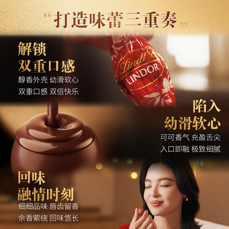 百年品牌匠心作,纯可可脂,丝滑不腻。;脆壳咬开流心爆浆,一口融情的甜蜜暴击。;18粒精致礼盒装,自用赠礼皆显品味。