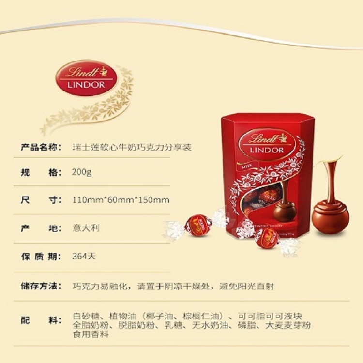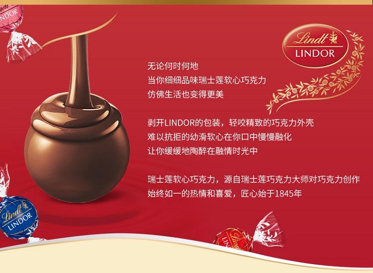 百年品牌匠心作,纯可可脂,丝滑不腻。;脆壳咬开流心爆浆,一口融情的甜蜜暴击。;精选黄金产区可可,每口都是醇厚本味。