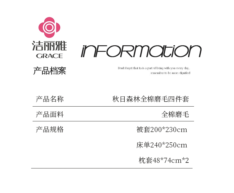 洁丽雅 秋日森林全棉磨毛四件套JLY-T713