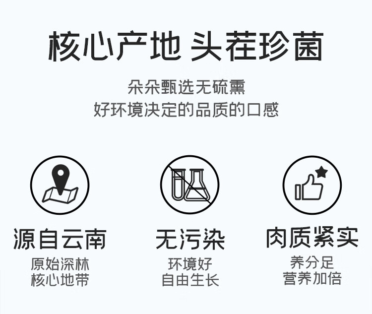 个头饱满、肉质肥厚;头茬采摘、口感爽脆;拒绝添加、无硫熏