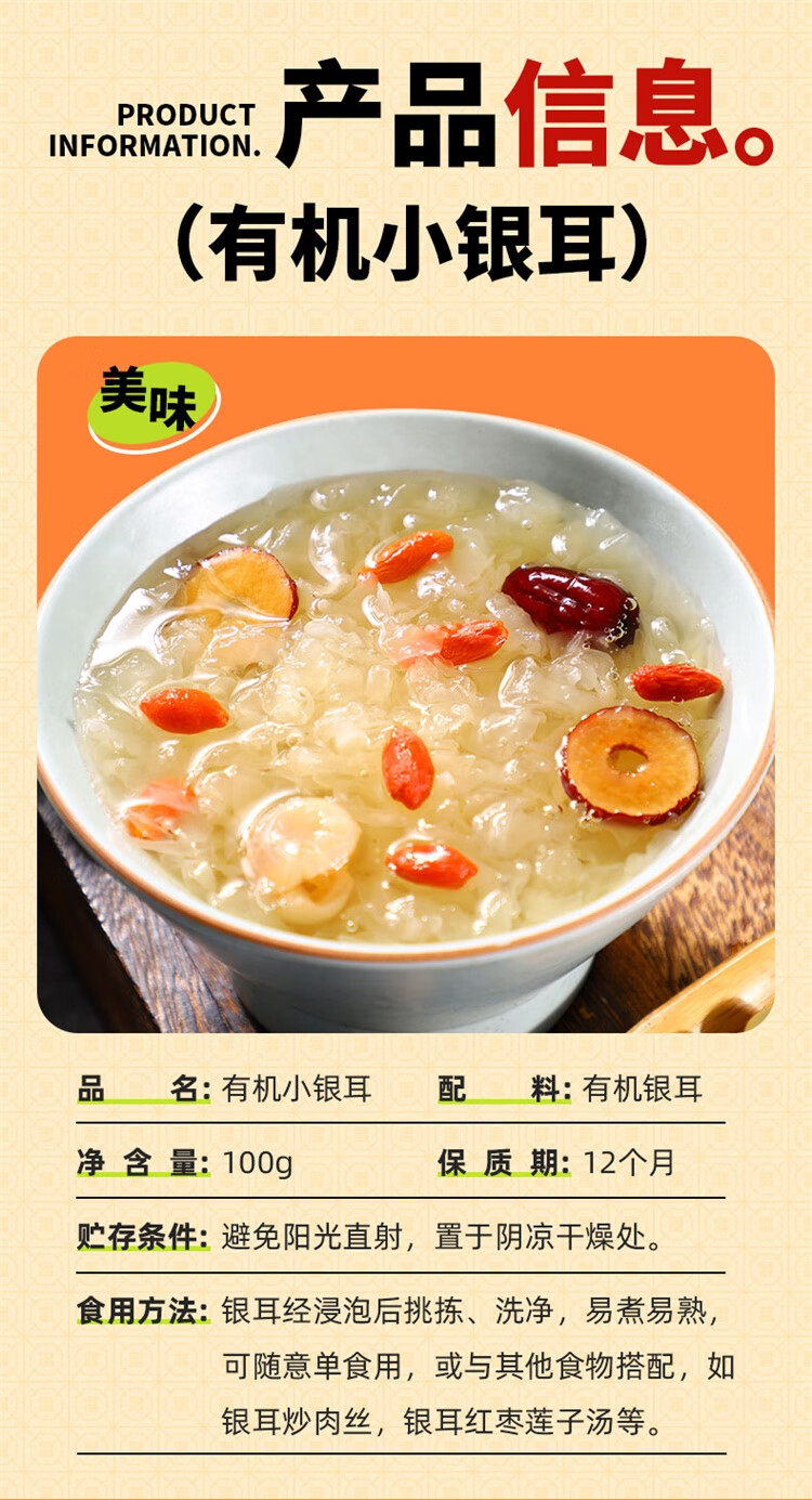 配置清单:有机小银耳100g/袋