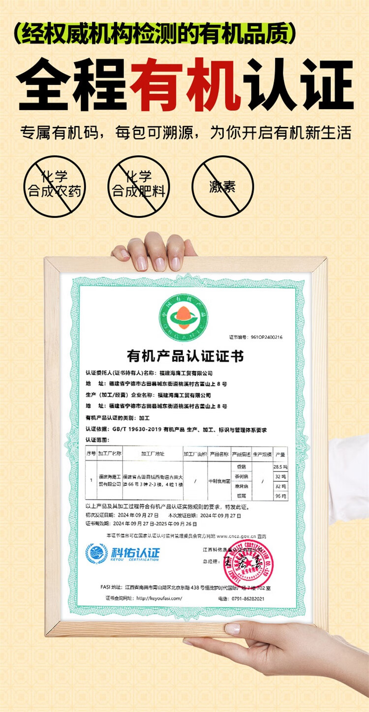 软糯易出胶;有机品质、软糯香甜;源自古田、高山种植