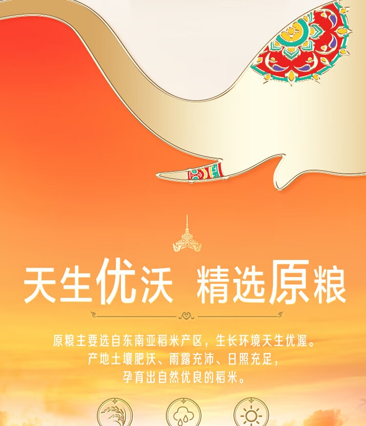 原粮主要选自东南亚稻米产区,生长环境天生优渥。;精选优稻;适合礼品送礼