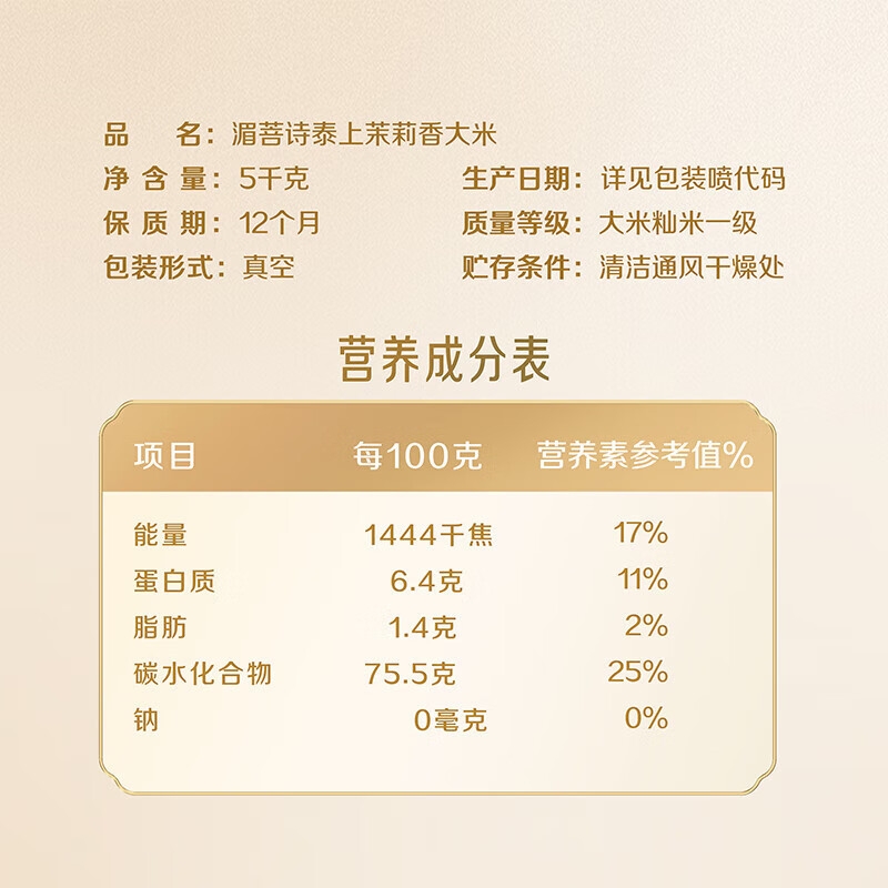 金龙鱼 湄菩诗泰上茉莉香大米5kg