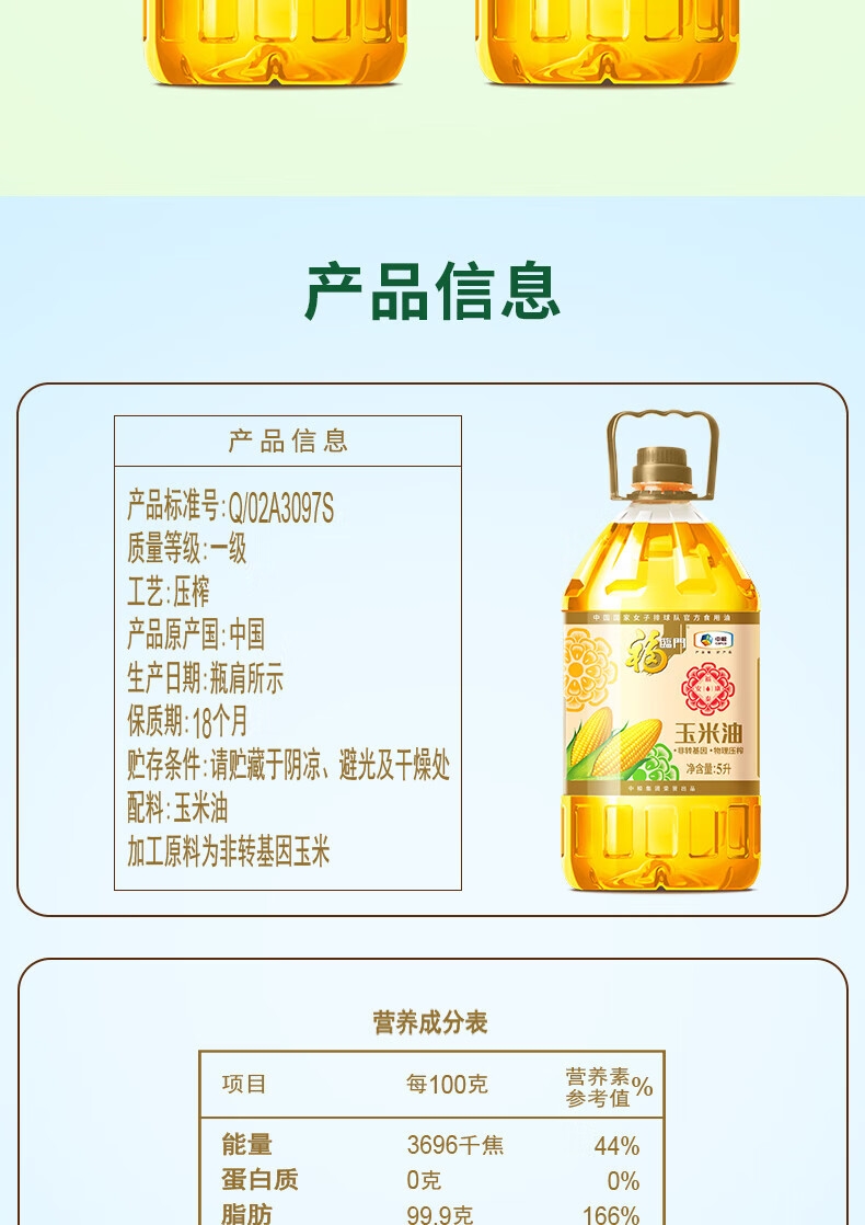 福临门 中粮福泰安康玉米油5L