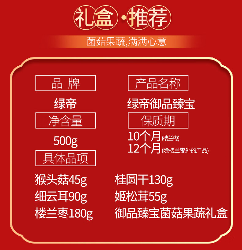 绿帝 御品臻宝菌菇果蔬礼盒500g