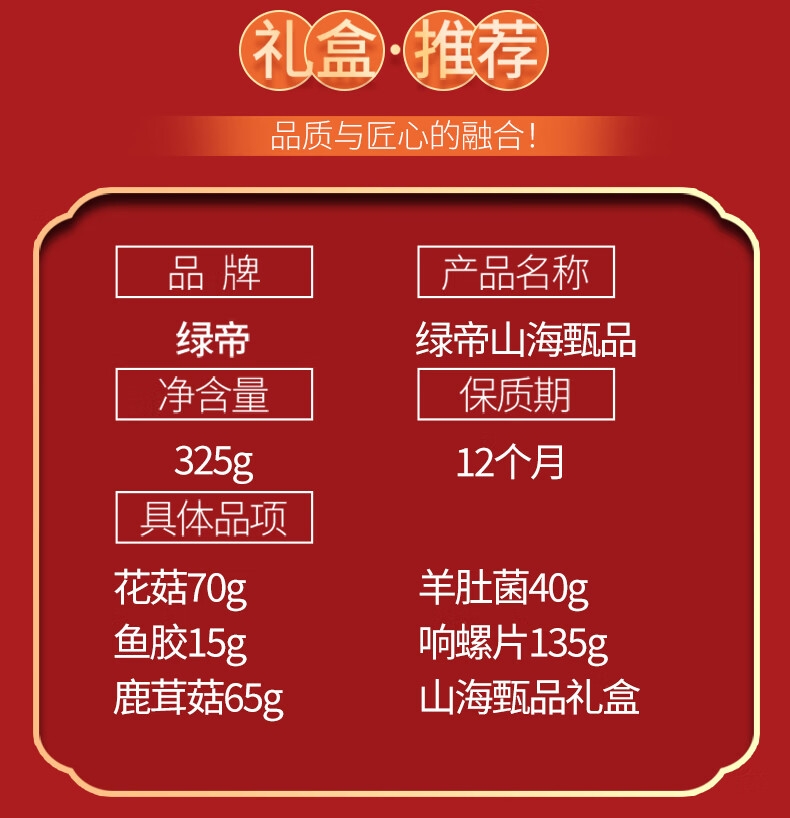 绿帝 山海甄品海产干货礼盒325g