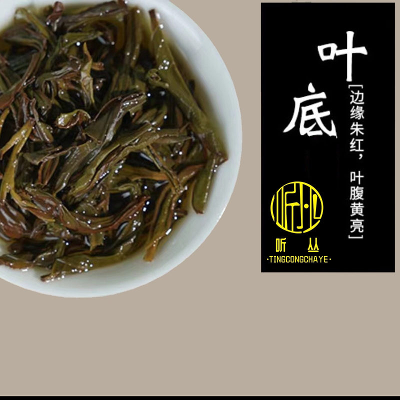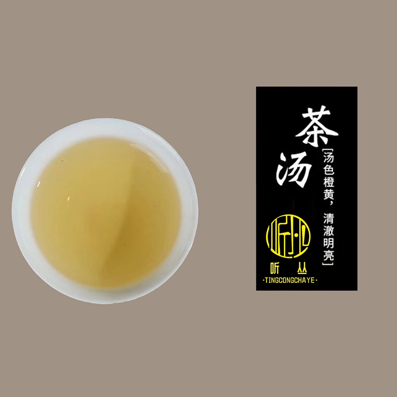 干茶外形紧结肥硕,色泽红褐或乌润,条索紧结较直;香气浓郁,独具兰花香和甜美的蜜香,两者交织在一起;汤色橙黄透亮,清澈明亮,表现出茶叶的高品质。