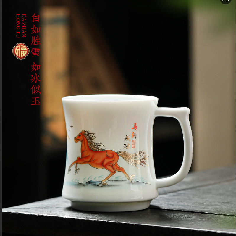 瓷伽什 马到成功羊脂玉办公杯CJS-YZY-0022