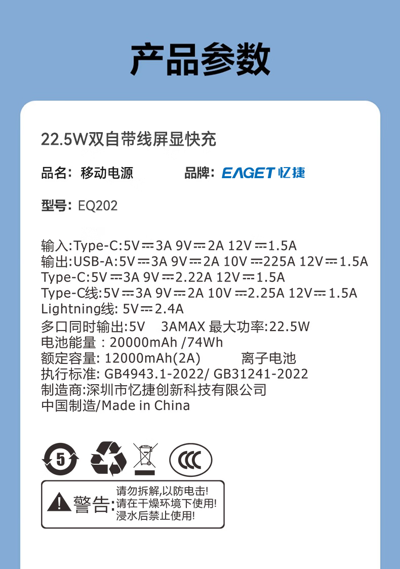 忆捷 EAGET移动电源EQ202