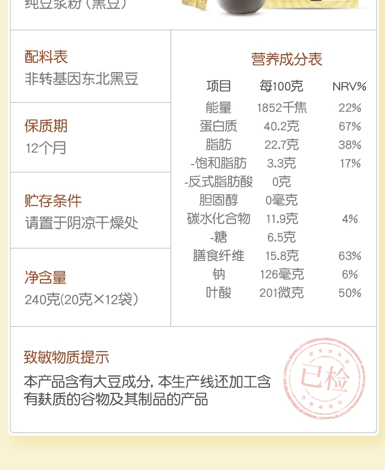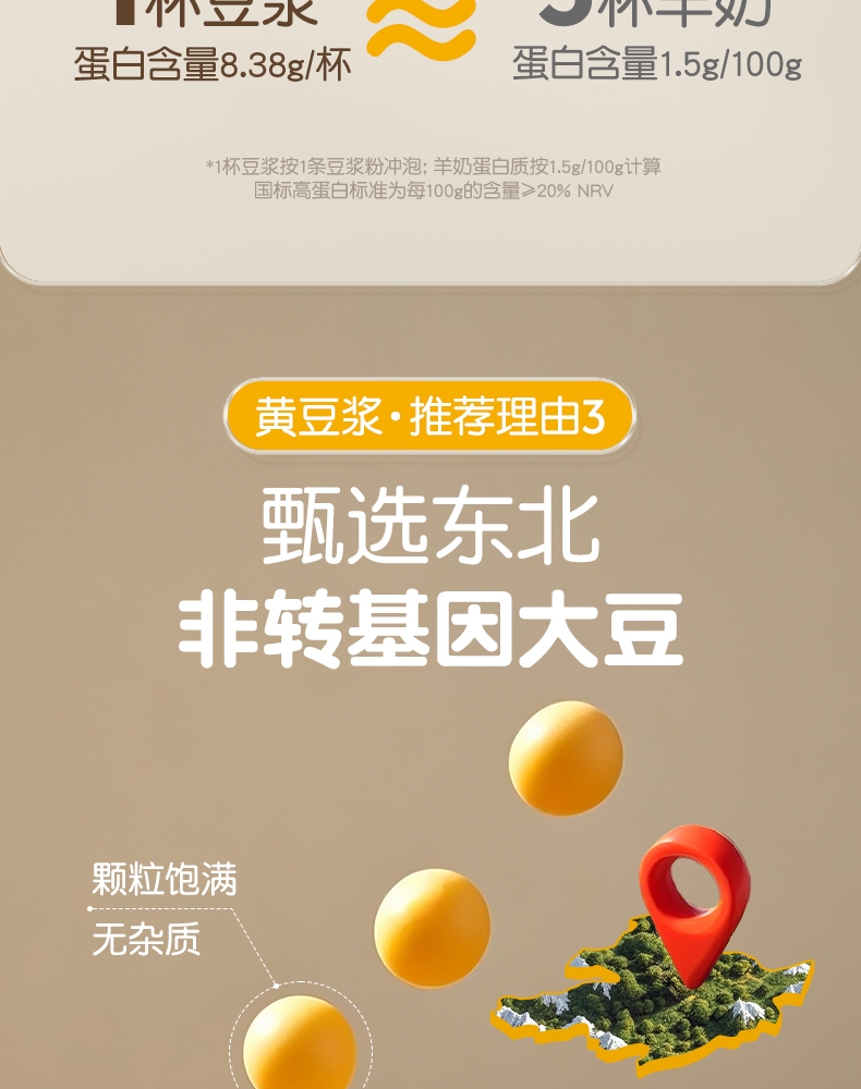 高蛋白质,营养价值高;非转基因大豆;高铁。硒元素