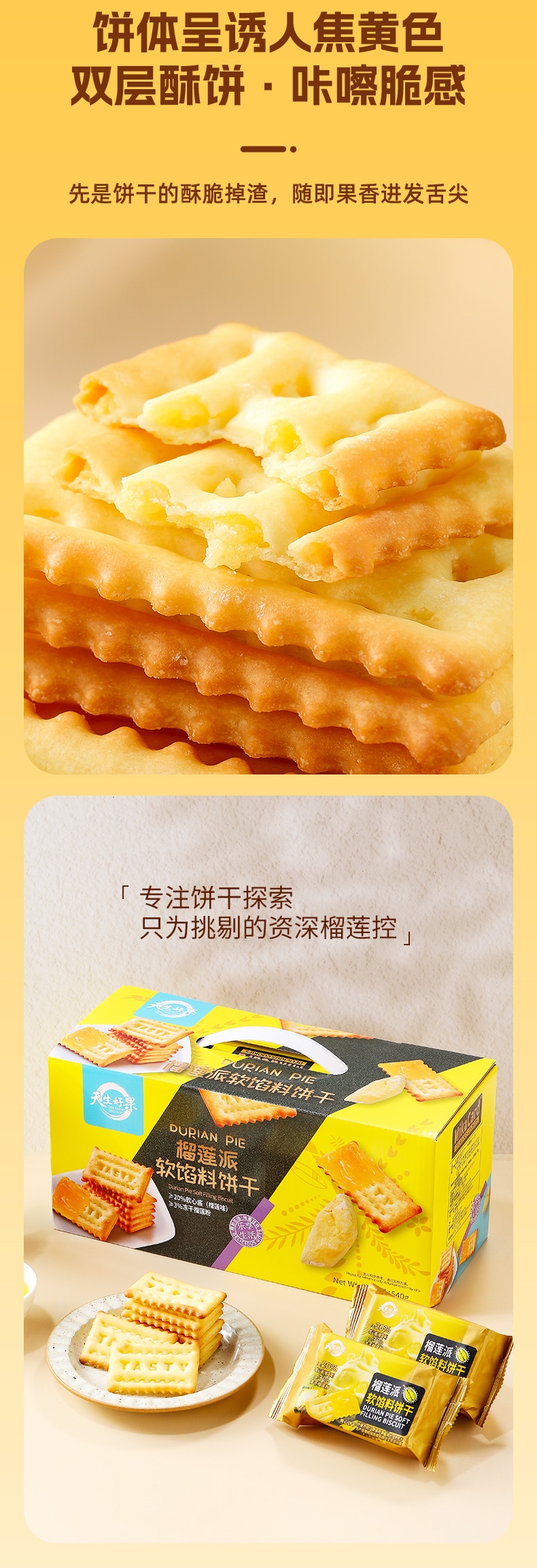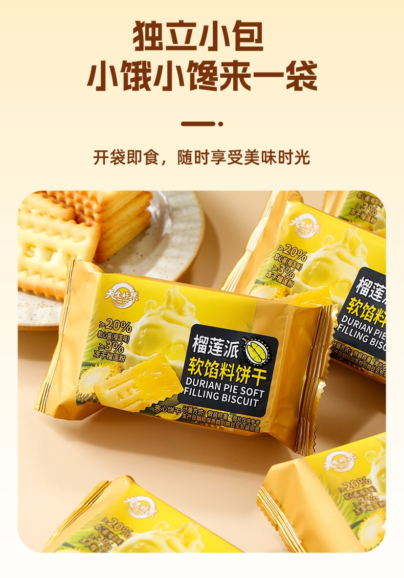 天生好果 榴莲派软馅料饼干540g