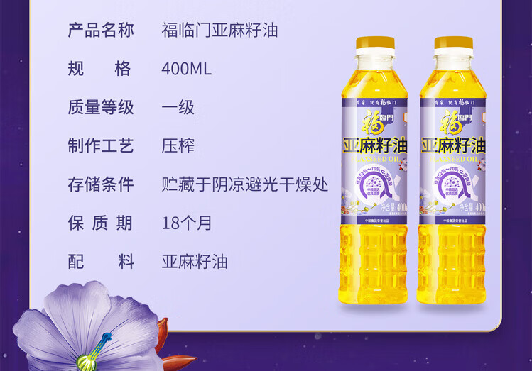 福临门 中粮亚麻油礼盒400ml*3瓶