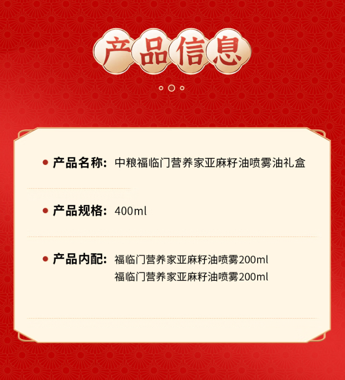 福临门 中粮亚麻籽油喷雾礼盒400ml