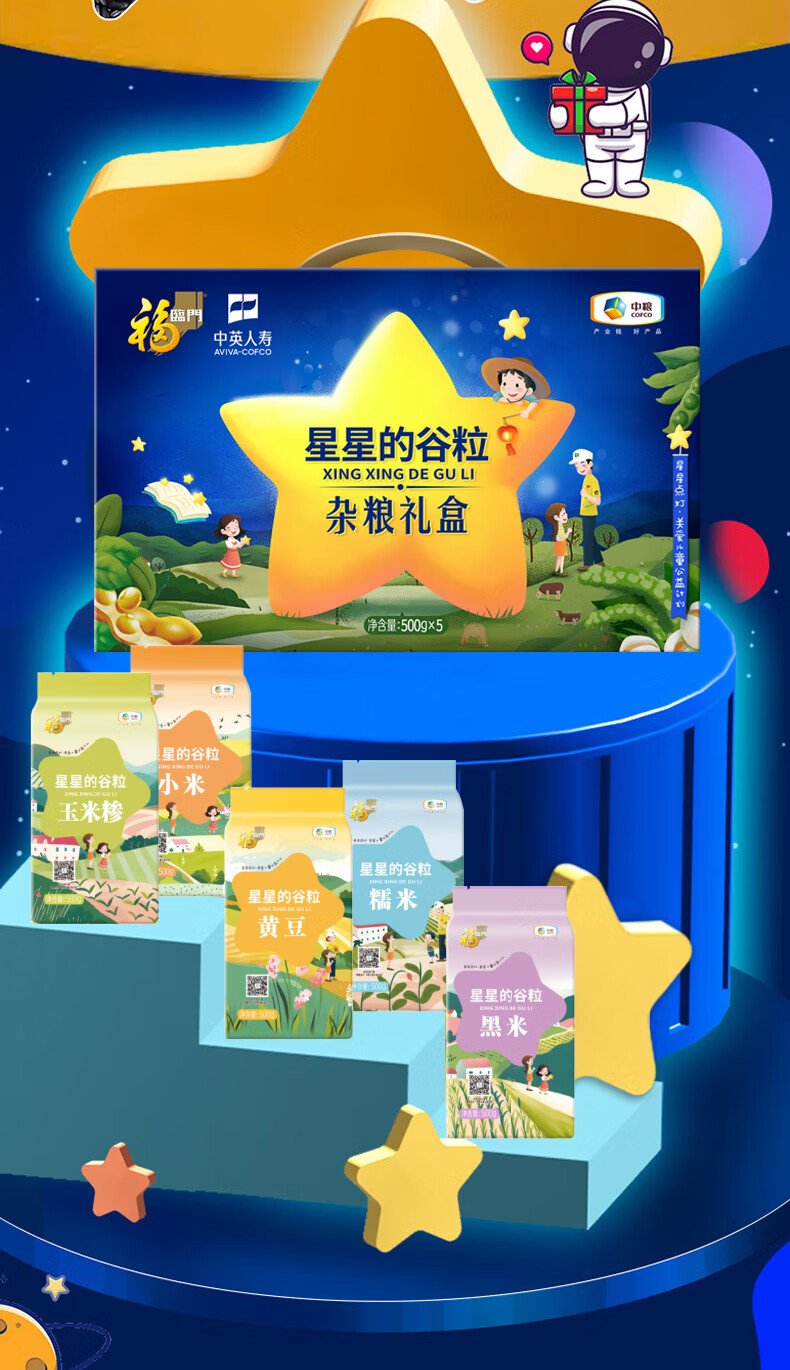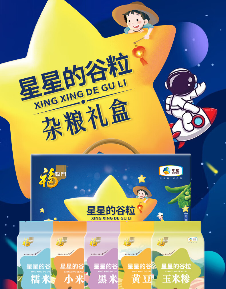 配置:中粮福临门星星的谷粒玉米糁500g 中粮福临门星星的谷粒糯米500g 中粮福临门星星的谷粒黑米500g 中粮福临门星星的谷粒黄豆500g 中粮福临门星星的谷粒小米500g