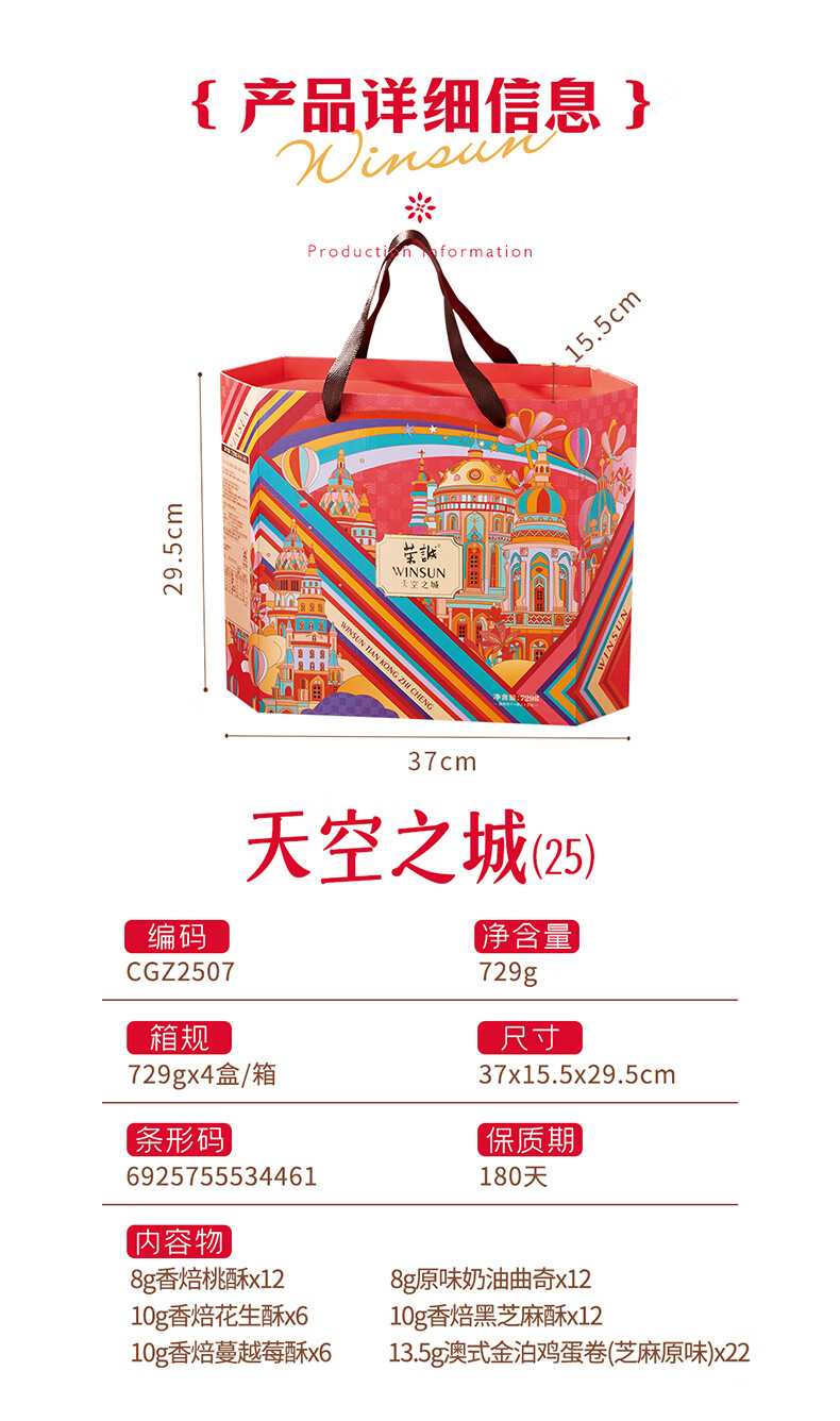 荣诚 天空之城曲奇蛋卷礼盒729g