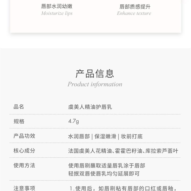 轻奢外观小巧精致随包易携高级有品;妆前打底乳液质地打造裸感嘟嘟嫩唇;温和滋养0色素0防腐剂清爽滋润上嘴没有油膜感