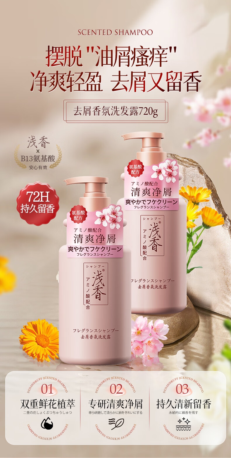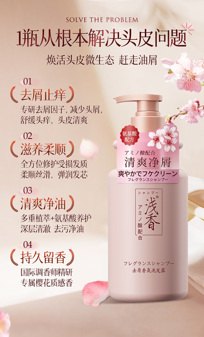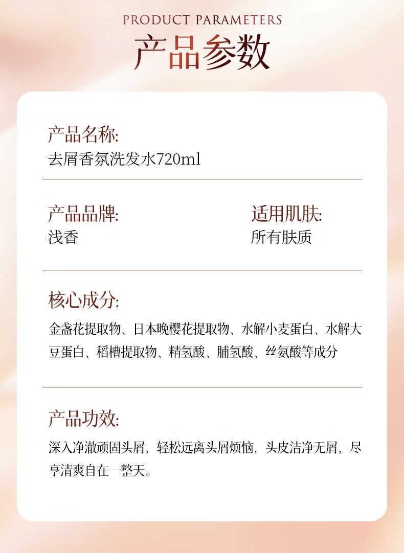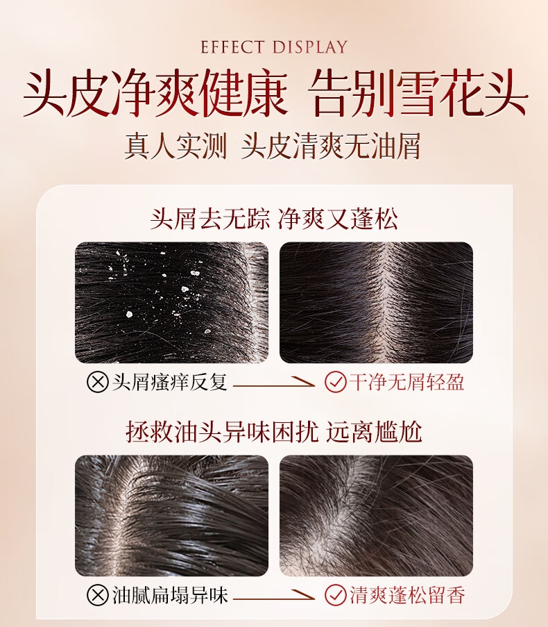 有效去屑,根源护理;舒缓保湿,告别头痒;净澈香氛,告别异味