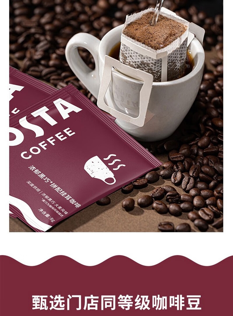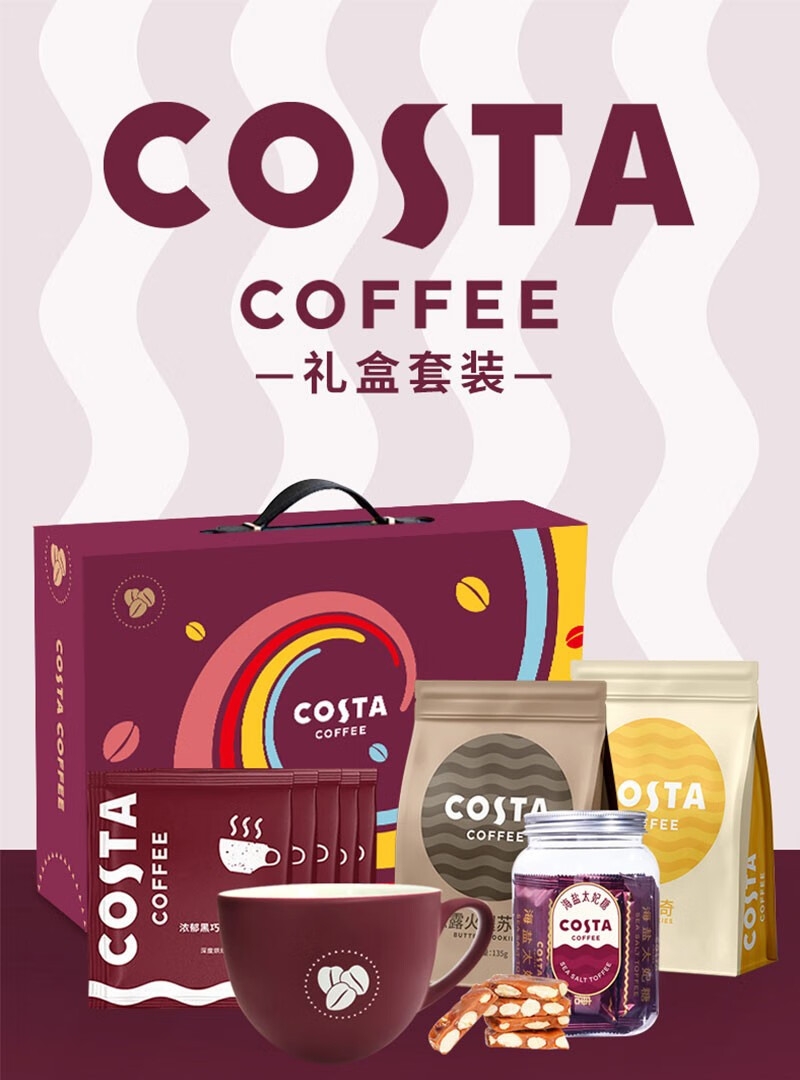 单包咖啡粉量提升,冲泡更浓郁。独立包装锁鲜;零食,挂耳咖啡满足提神需求,覆盖从早餐到下午茶;礼盒结合中国红配色,传递祝福