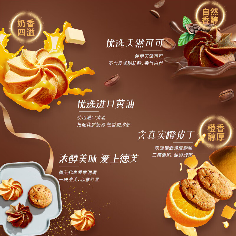 配置:原味花式曲奇 10gx4 巧克力花式曲奇 10gx4 橙皮巧克力曲奇 10gx4