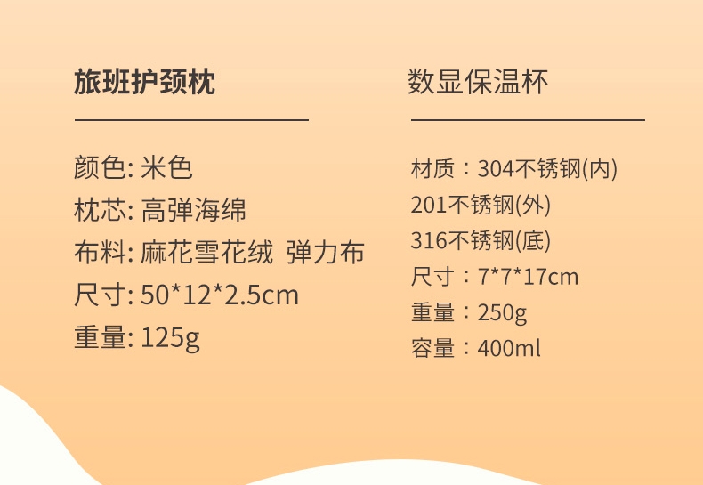 组盒配置::护颈枕*1 收纳袋*1 数显保温杯*1