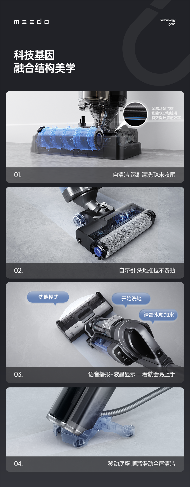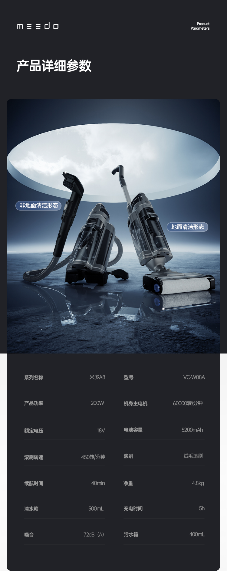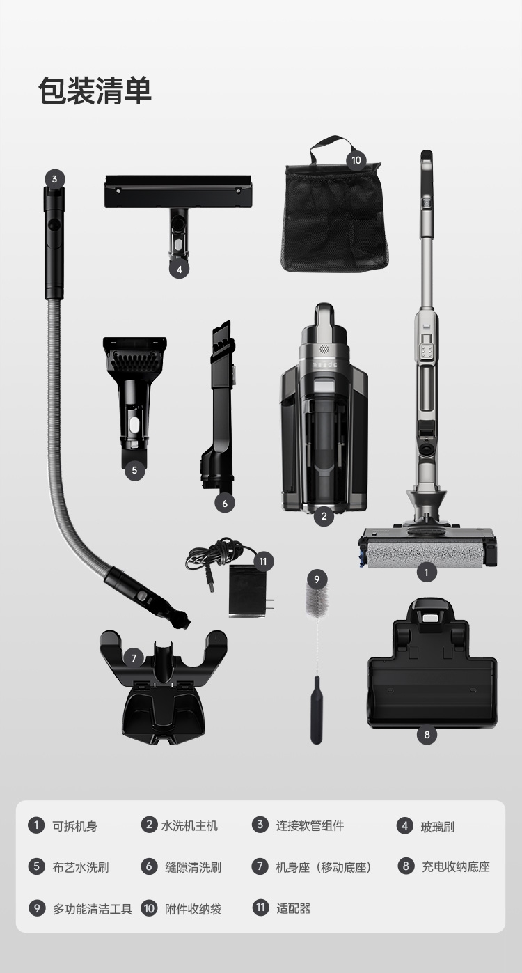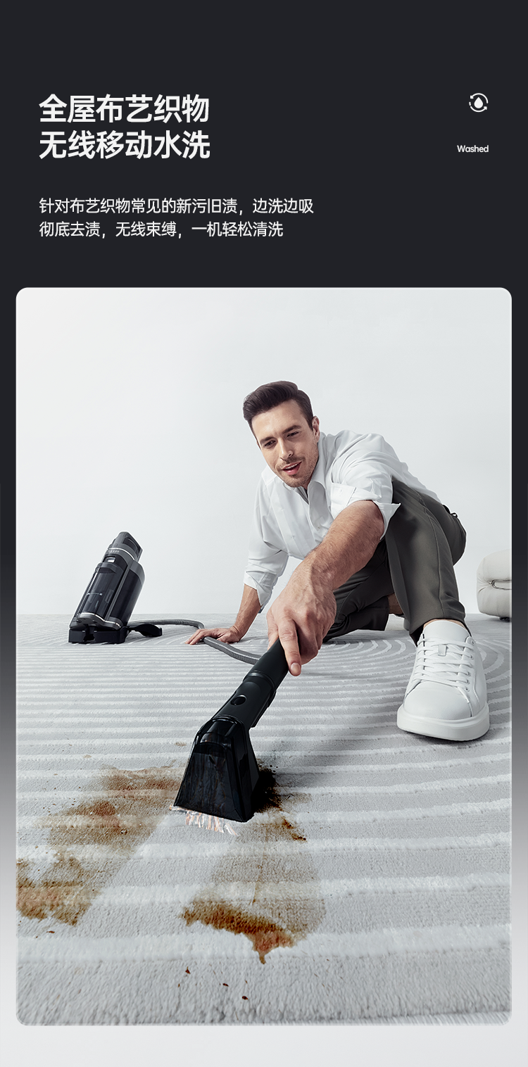 鸿蒙智联,远程控制 一机全能,全域水洗;12KPa高性能大吸力,200W大功率飓风吸力。;40分钟长续航,清扫整屋不断电;自清洁免手洗,4档自清洁模式。
