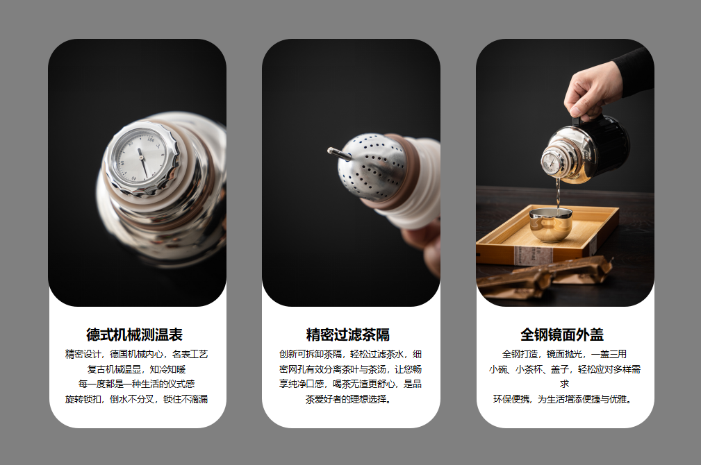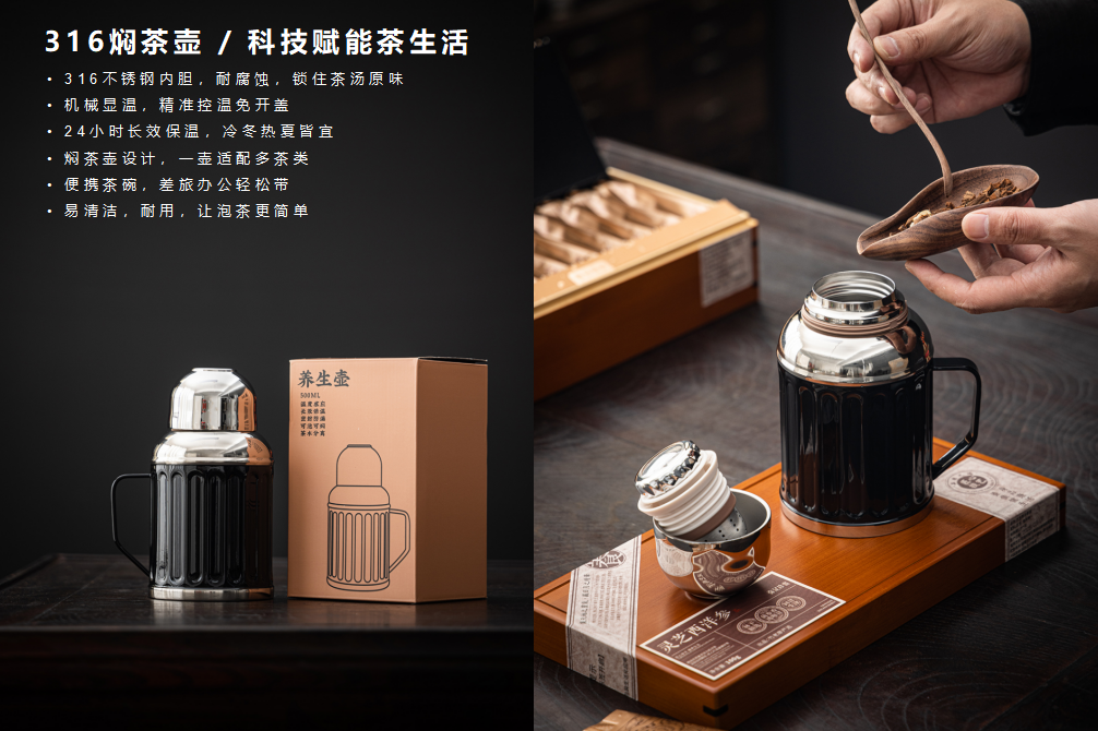 灵芝西洋参茶 健康与养生的结合;楠竹之韵 茶色之雅;316焖茶壶,机械显温,精准控温免开盖