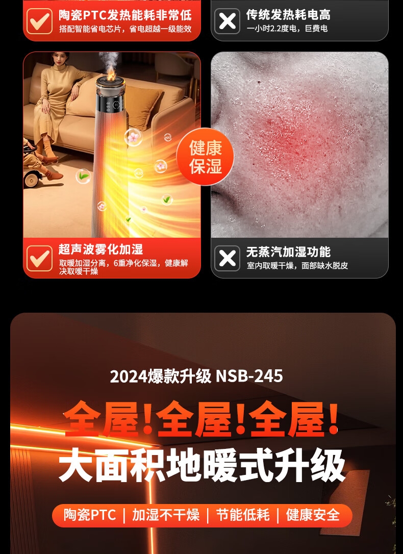 先科 语音声控雾化加湿暖风机取暖器NSB-245