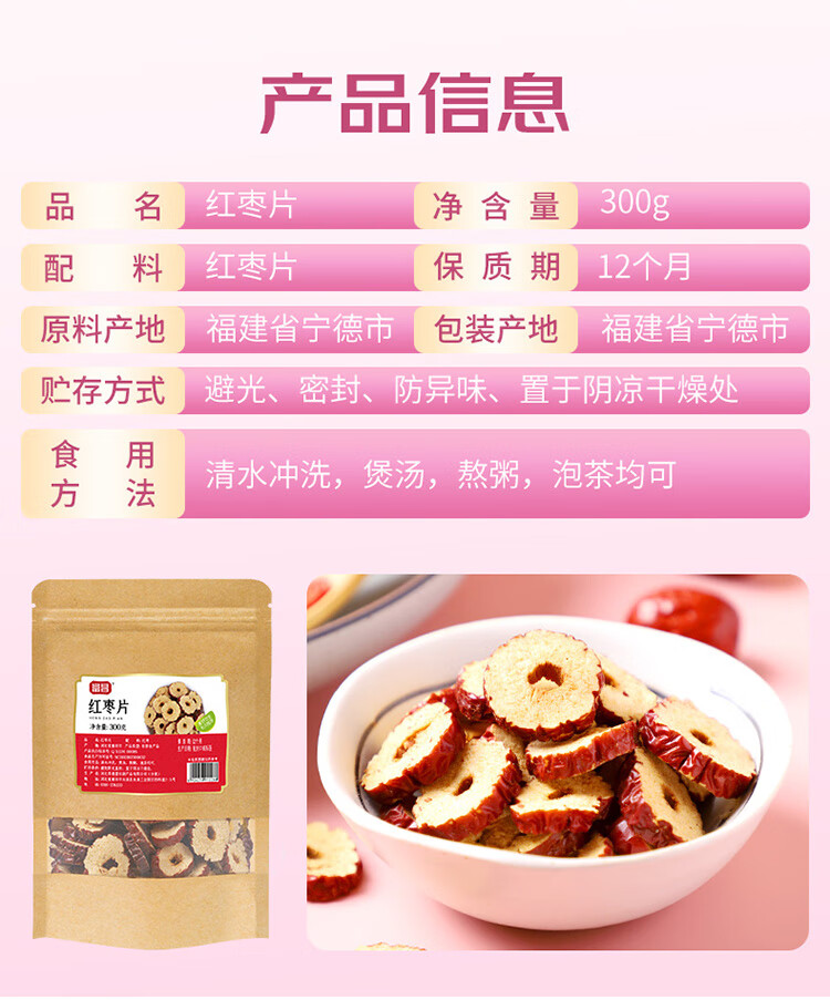 配置清单:红枣片300g/袋