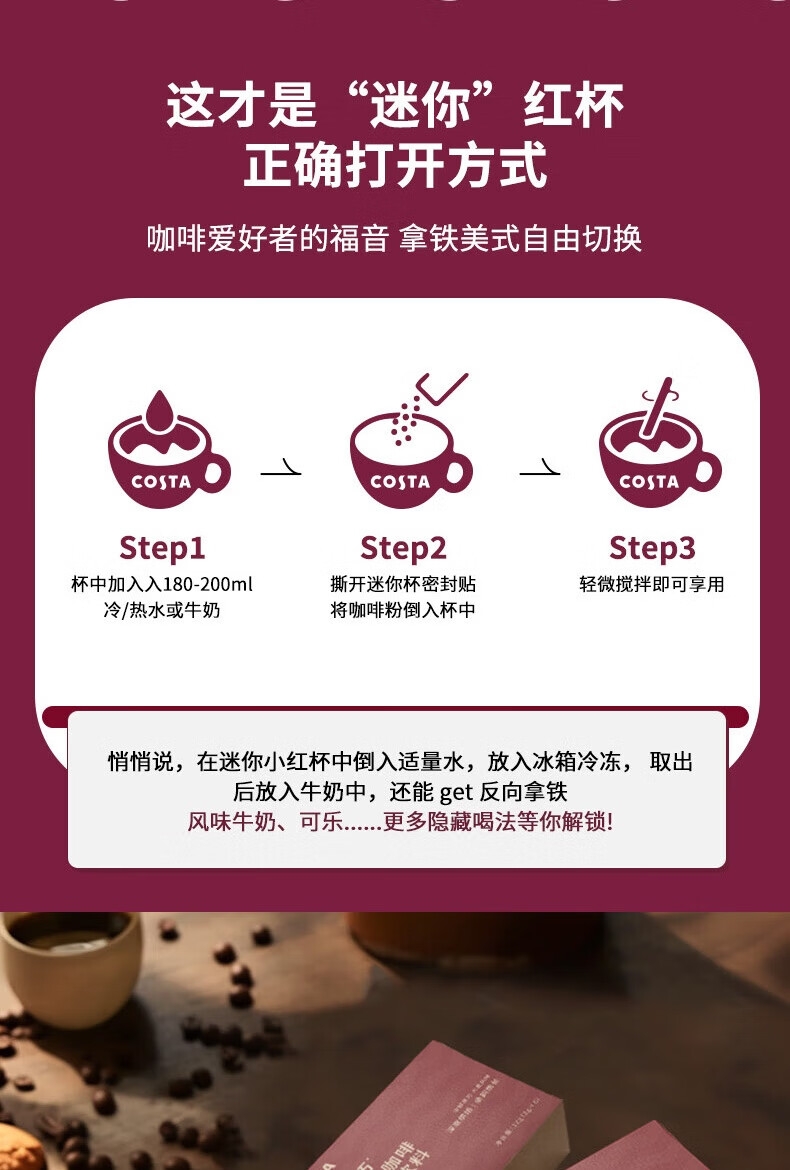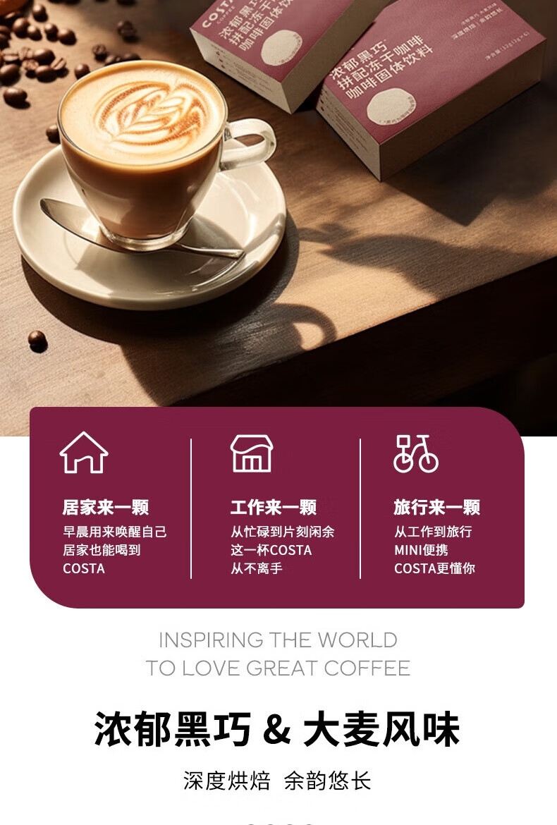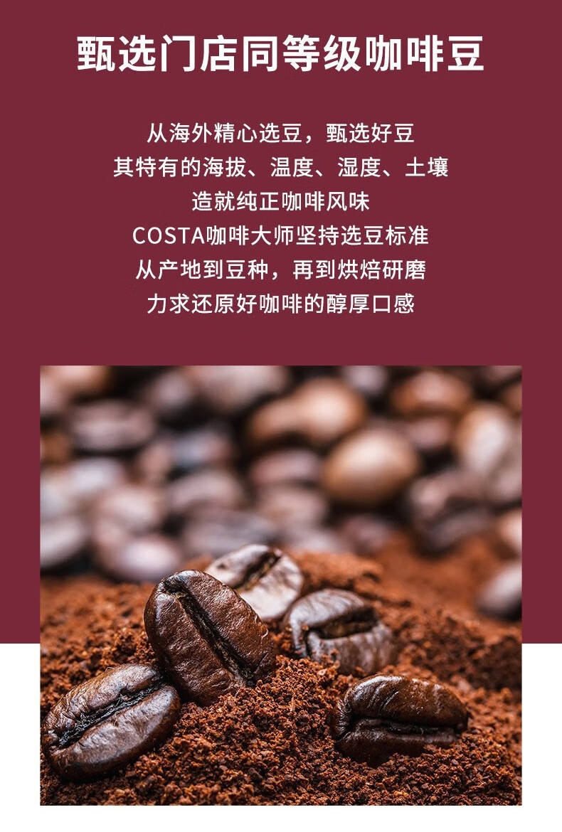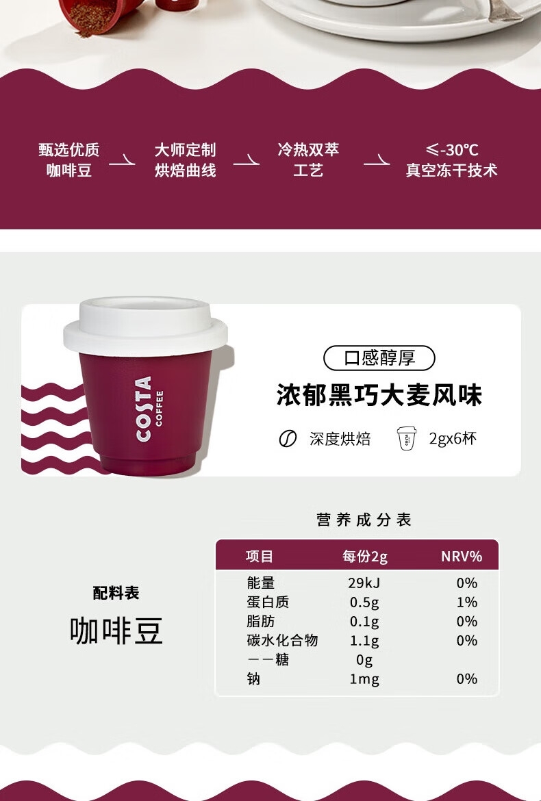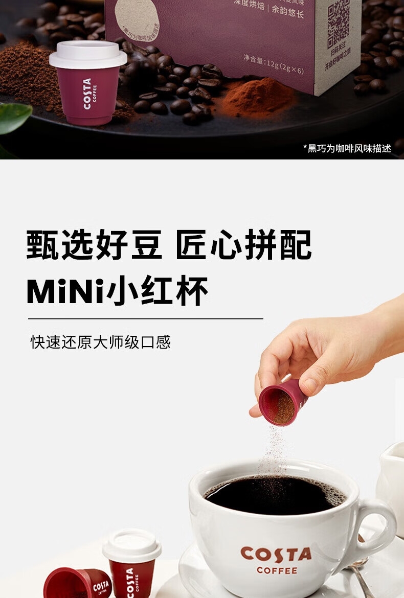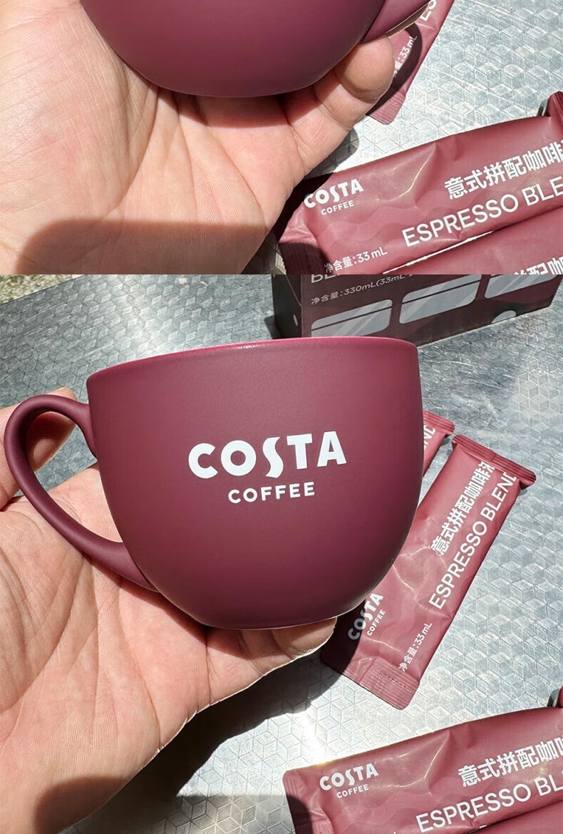 配置清单:COSTA浓郁黑巧挂耳咖啡80g、COSTA浓郁黑巧拼配冻干24g、COSTA鸿运杯、咖啡手冲壶