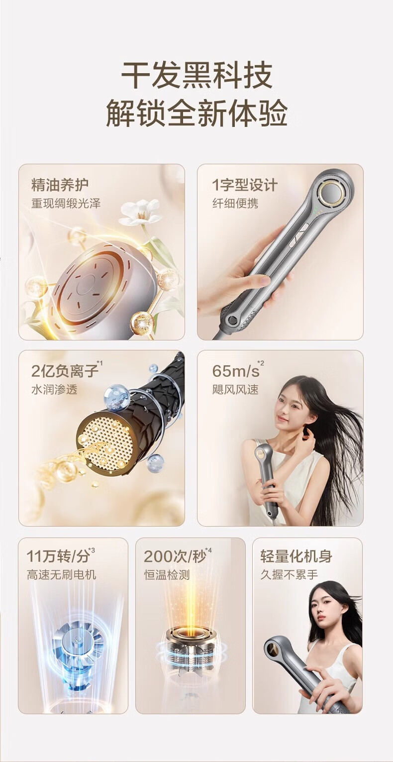 一 字型造型新颖便携;精油风嘴养护发质柔顺;智能恒温拒绝过热损伤