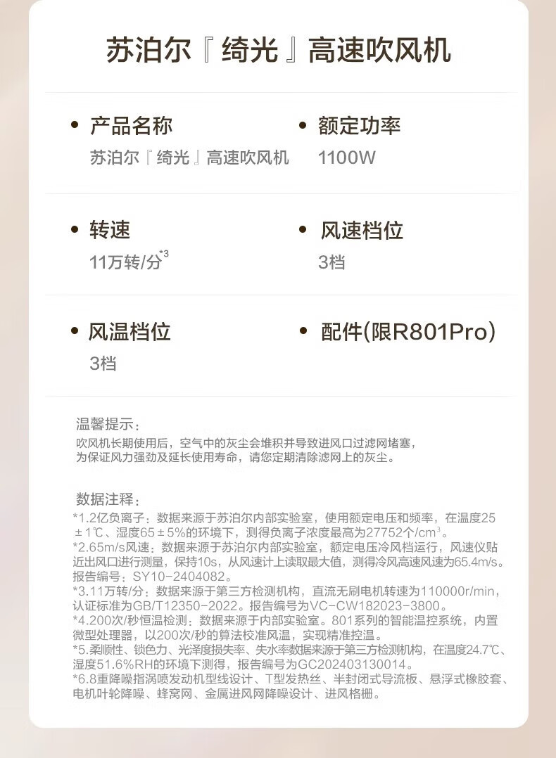 苏泊尔 家用恒温负离子速干电吹风EHDH-R801PRO