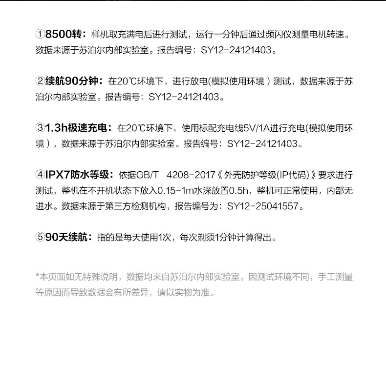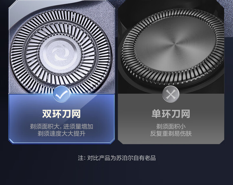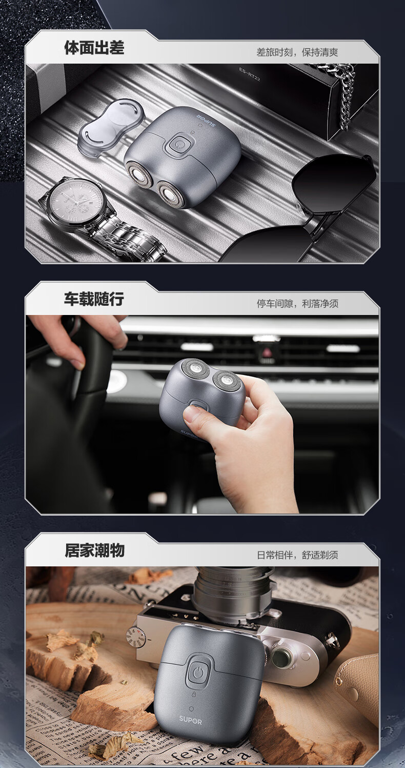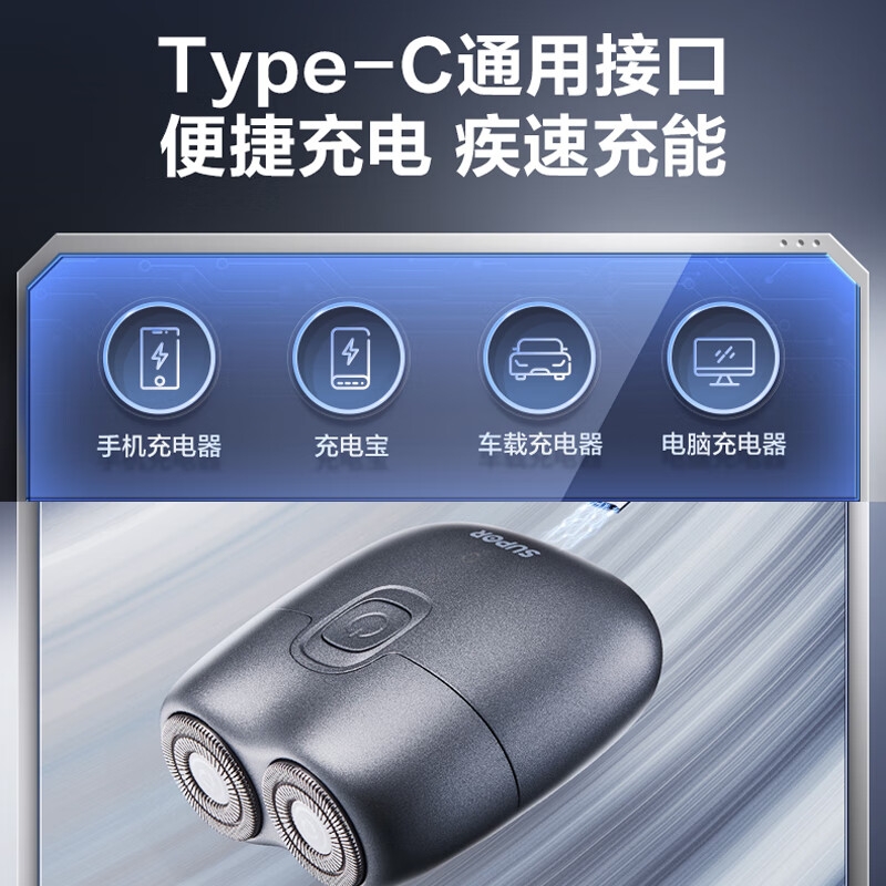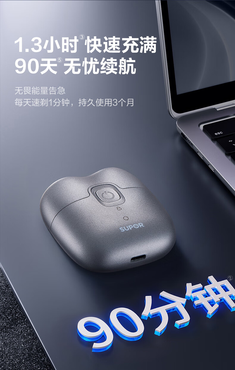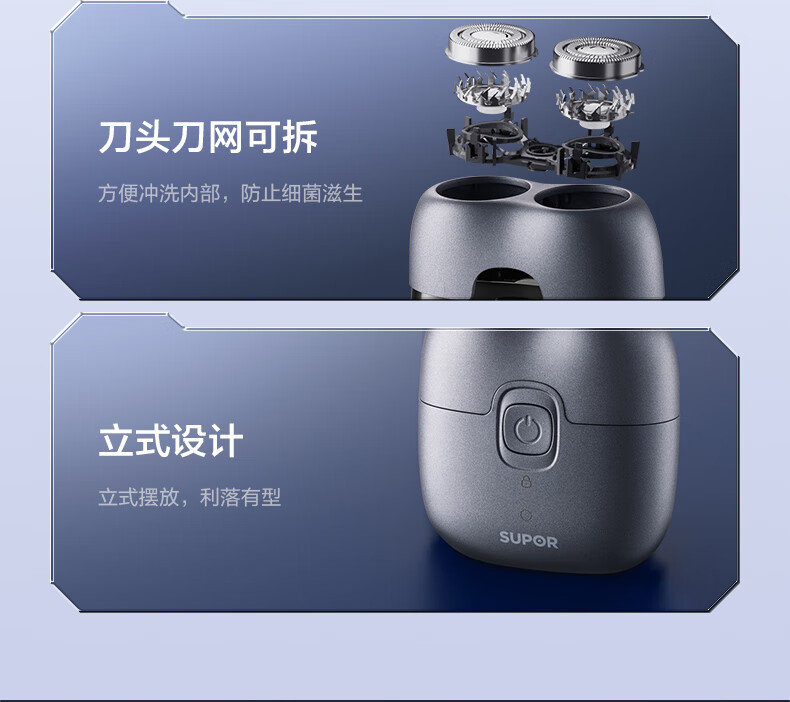 360°浮动两刀头; IPX7 等级防水;90min长续航