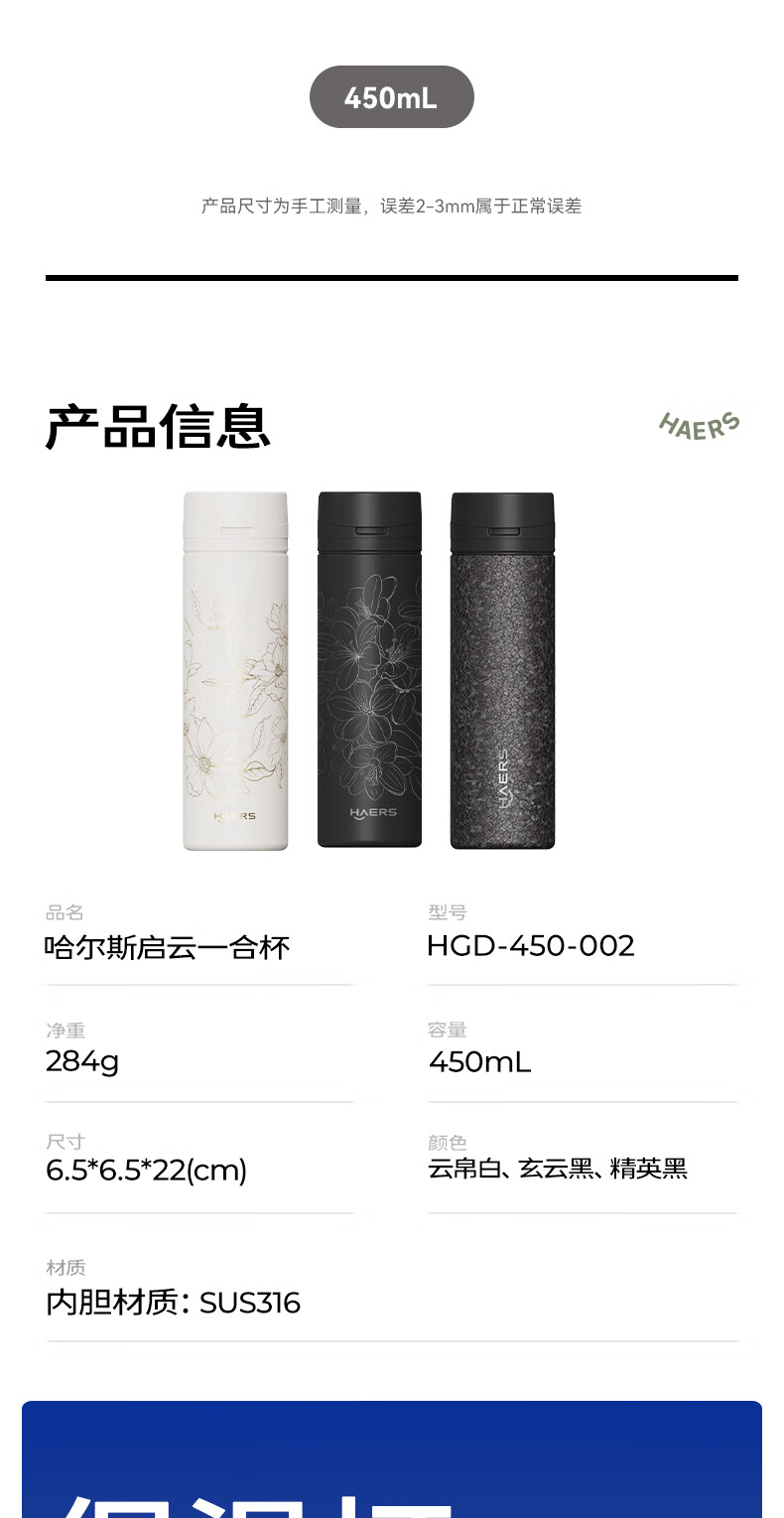 哈尔斯 启云一合杯保温杯450mlHGD-450-002