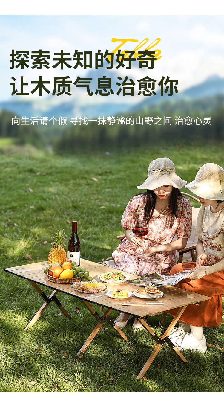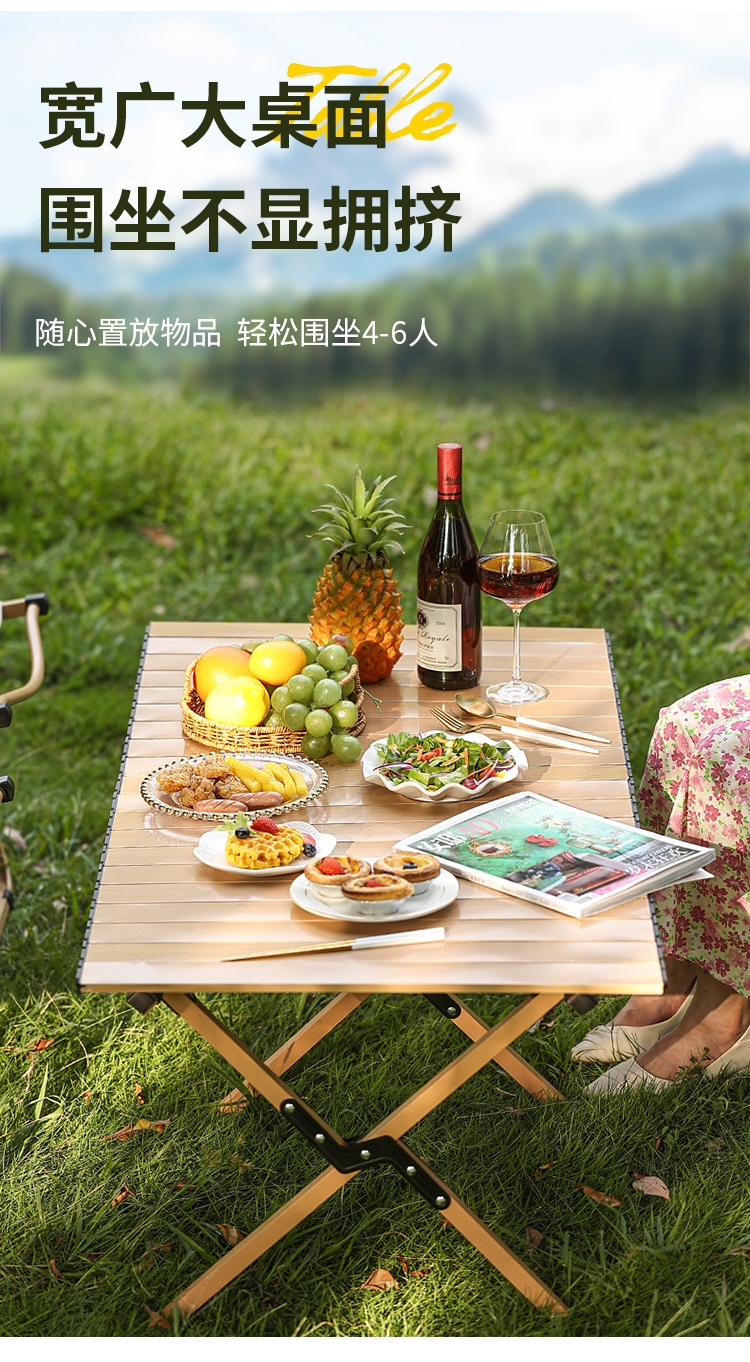 交叉稳固碳钢蛋卷桌,稳固防水耐腐蚀;;一桌多椅,折叠收纳,不占空间 ;;轻奢高级感配色,贴近自然;