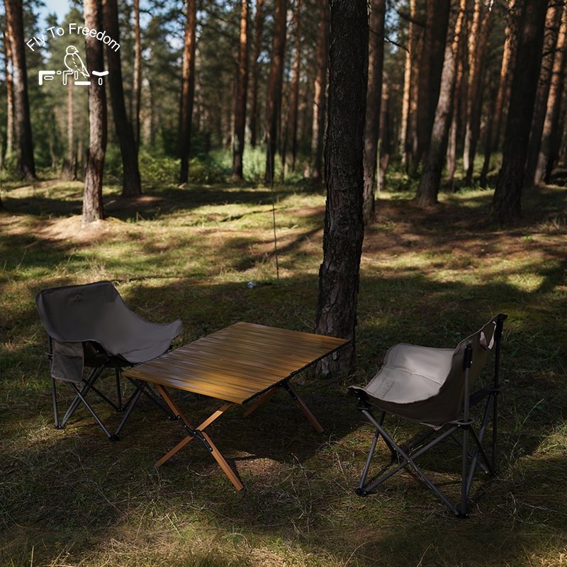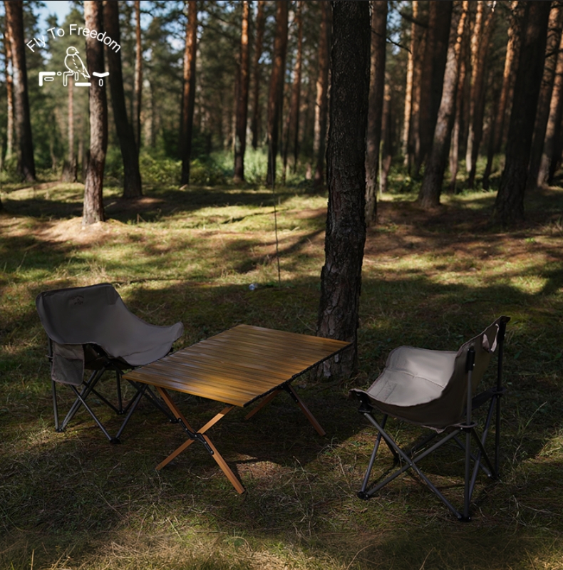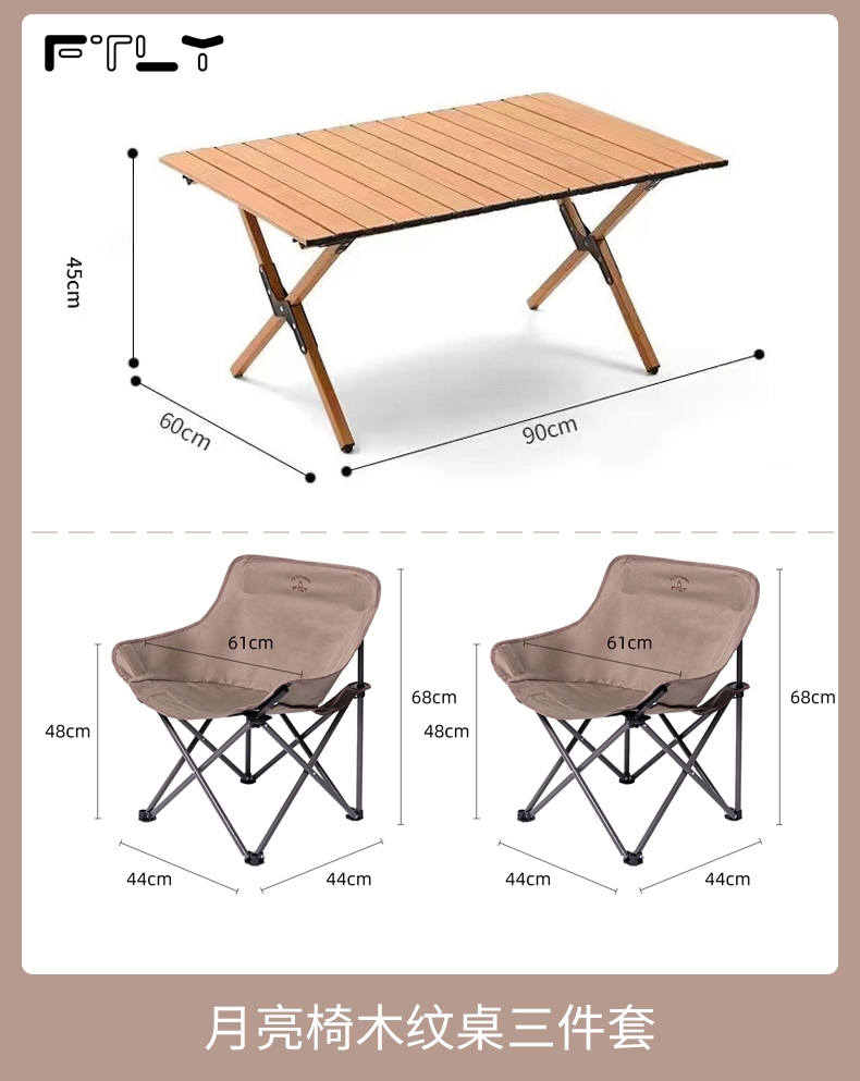 飞图乐 月亮椅木纹蛋卷桌折叠桌椅三件套ZDZY1801