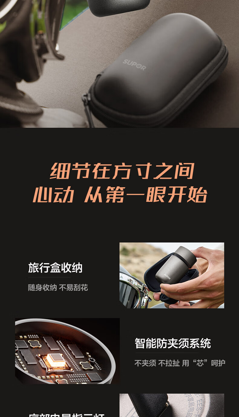 无开关无按键智能感应;小于掌心真便捷;双磁吸附磁感开盖