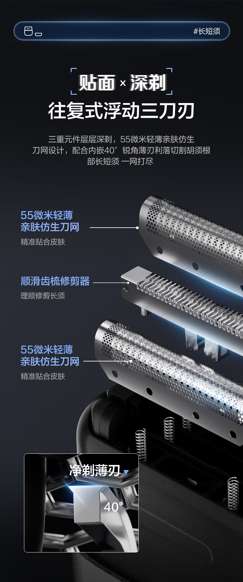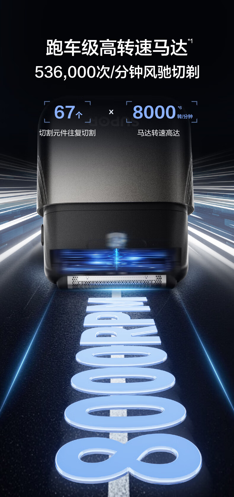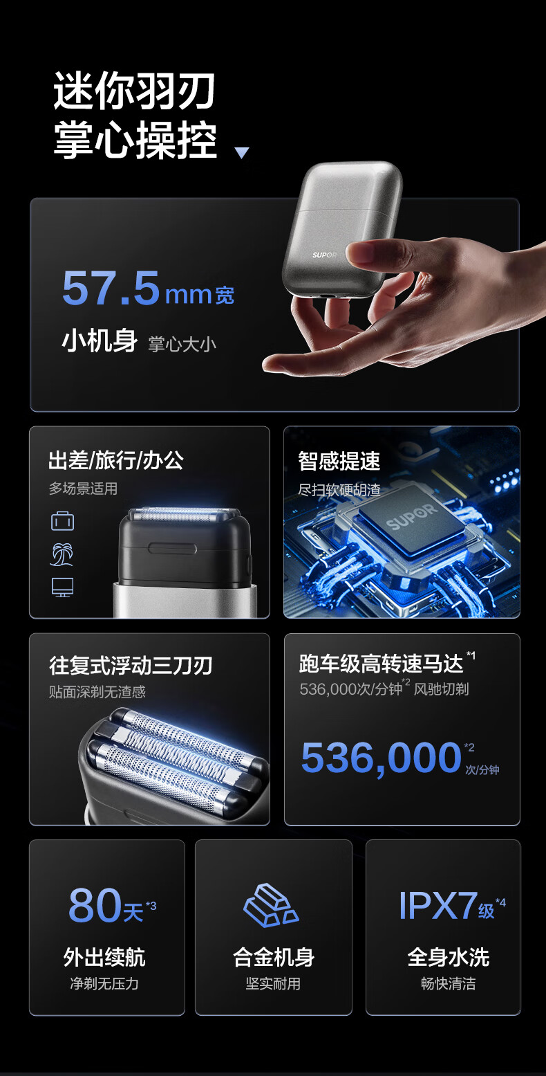 80天持久续航;磁吸刀头方便清洗;IPX7 全身水洗