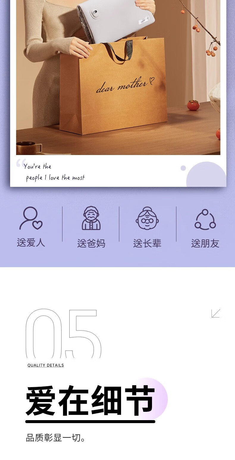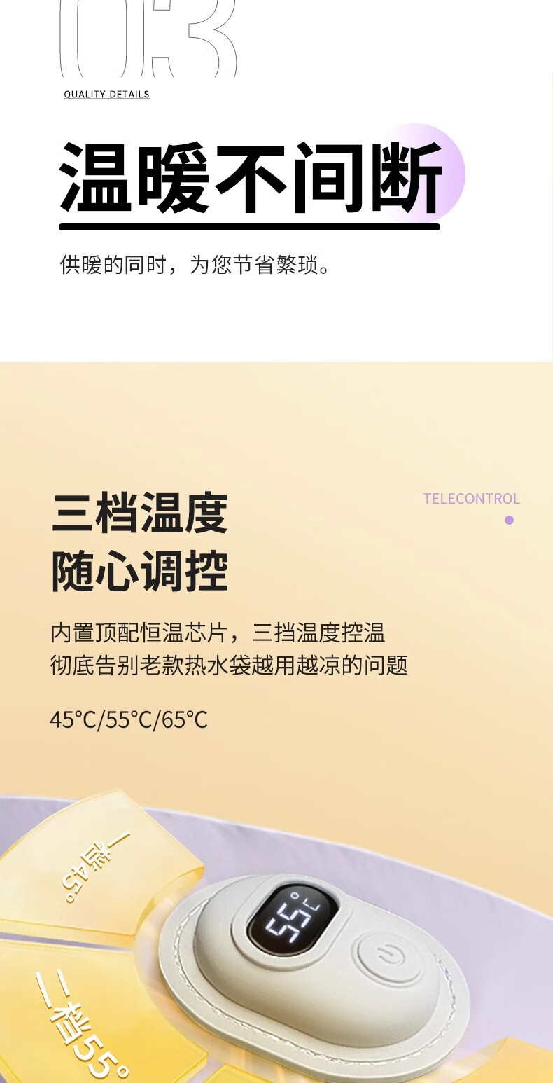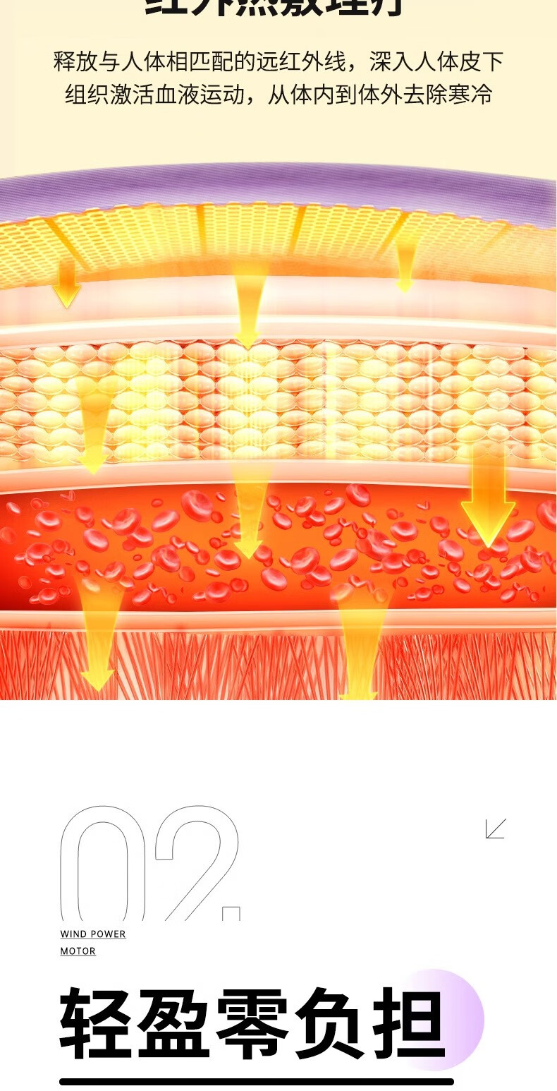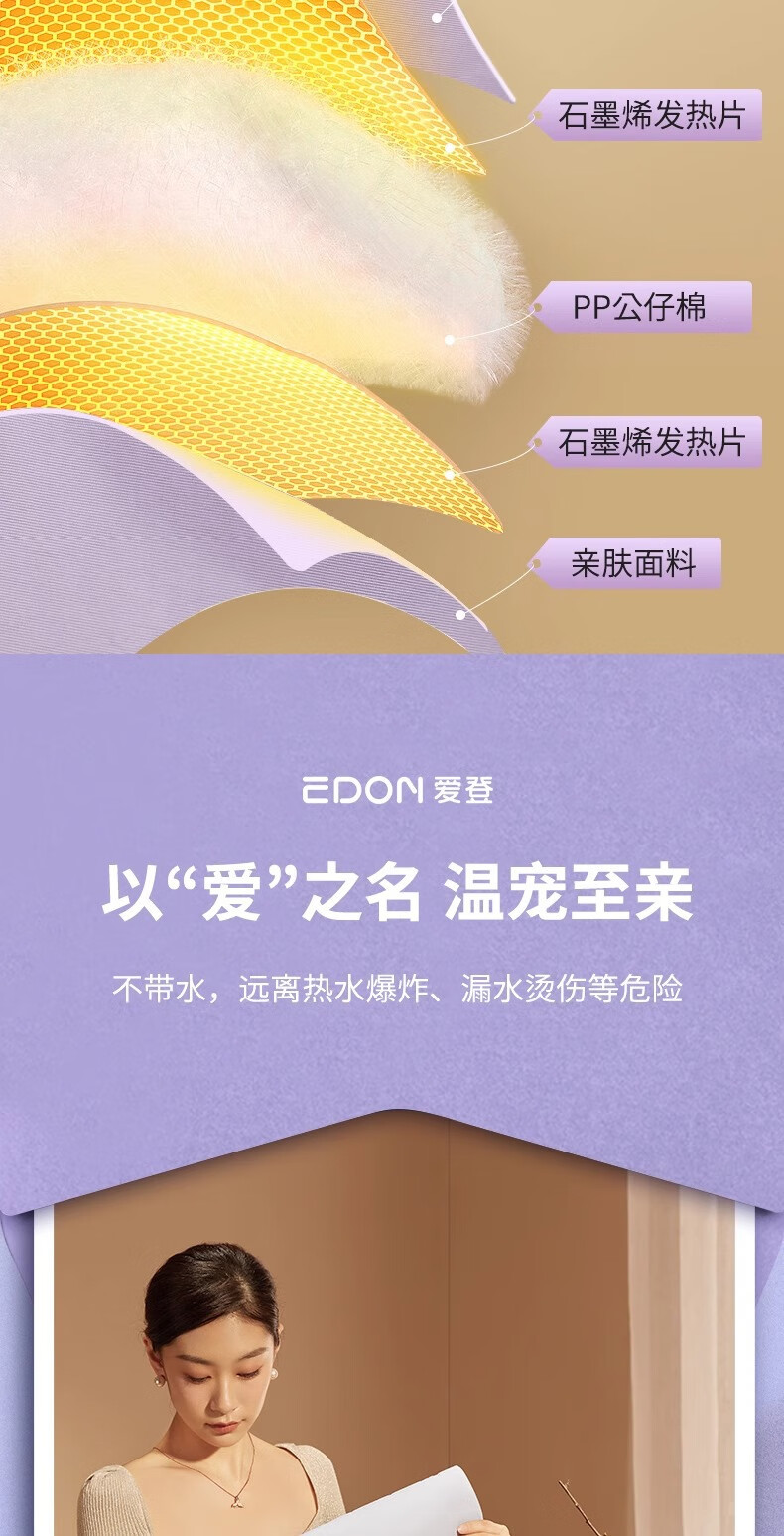 石墨烯发热技术 3秒快速升温;暖腰、暖宫、暖手 解放双手;大面积取暖,热量更足;搭配5000mah充电宝,长效供暖
