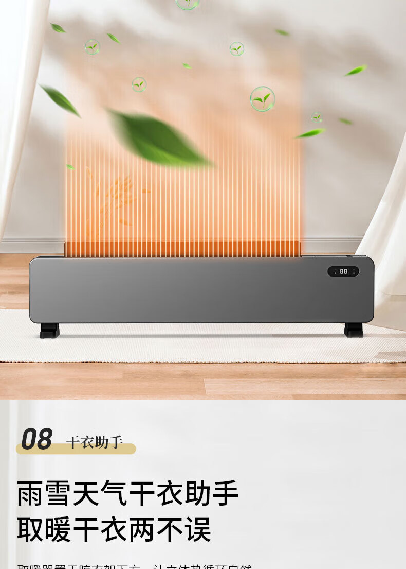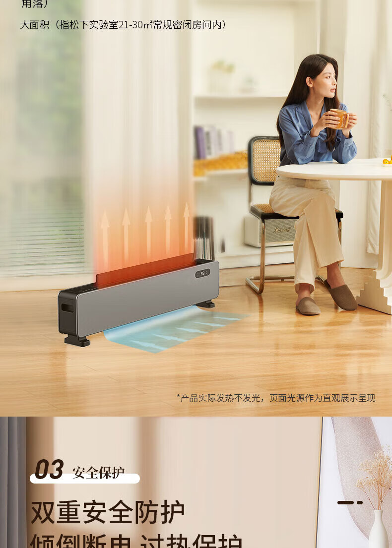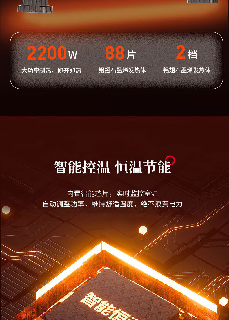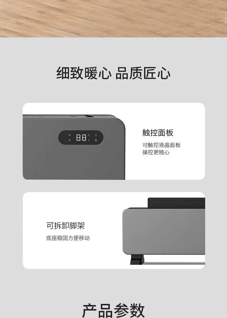 特有防尘盖设计,启动后自动翻盖开启,满满仪式感;石墨烯发热体,取暖效率提升,即开即热;离子群模块:有效净化空气。