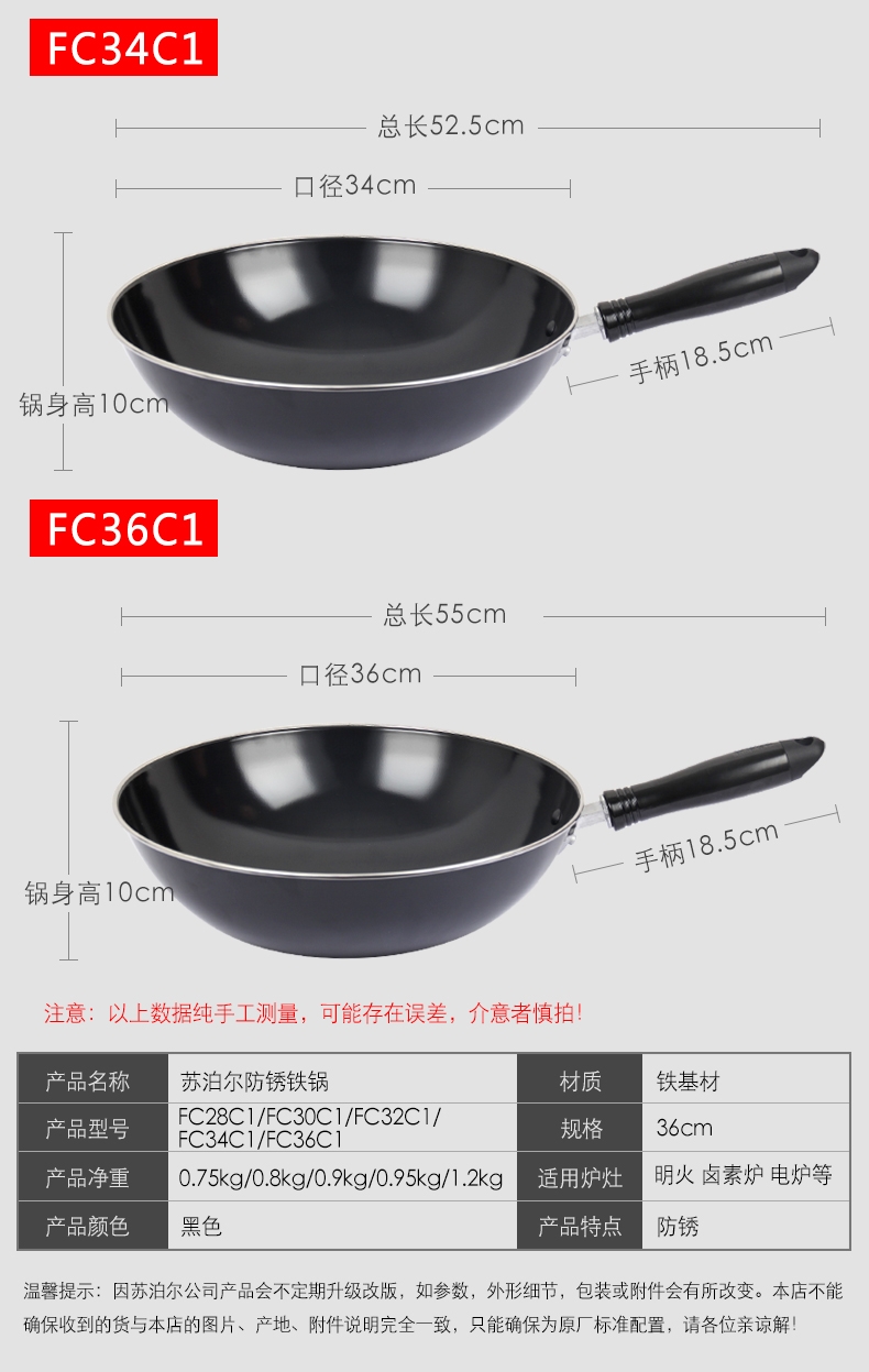 苏泊尔 36cm好帮手防锈铁锅FC36C1