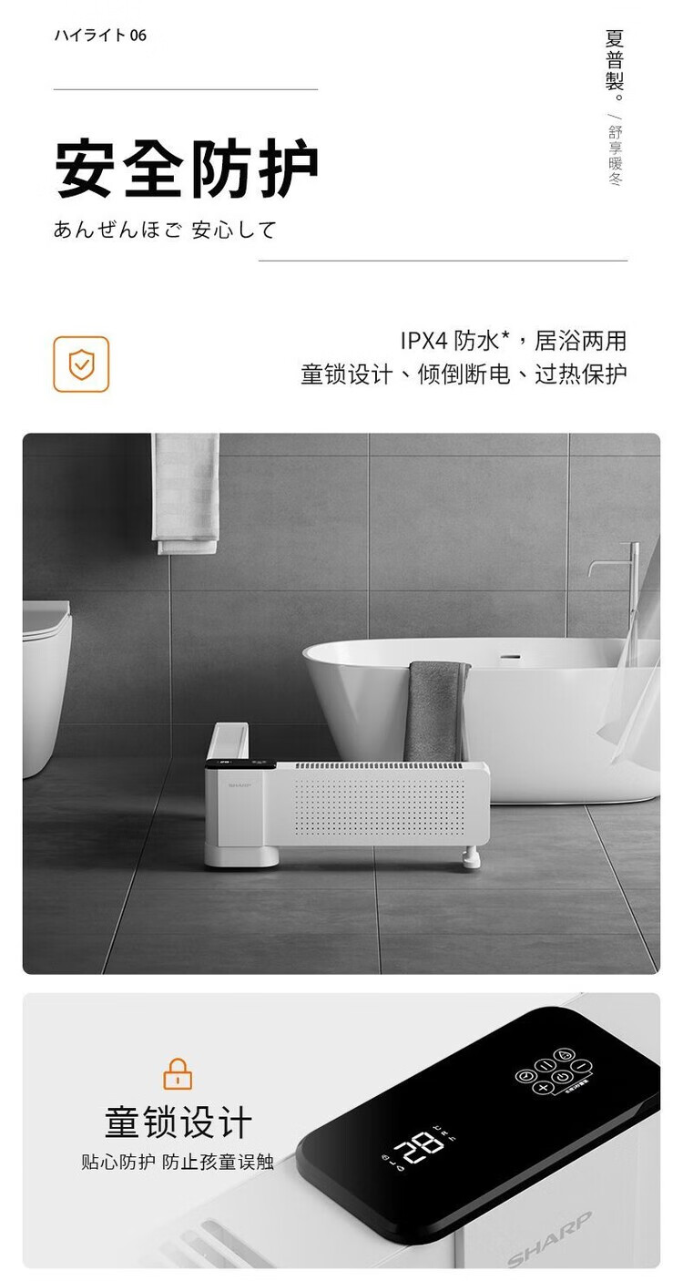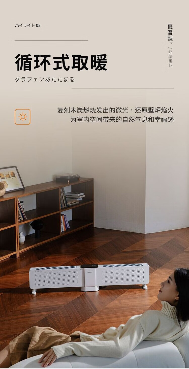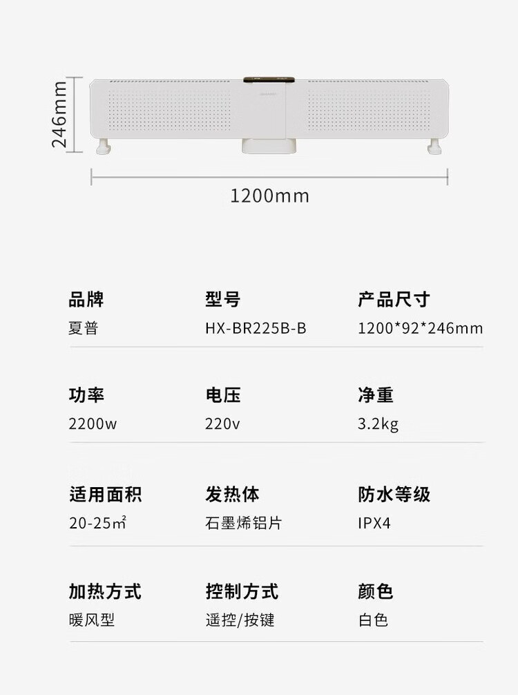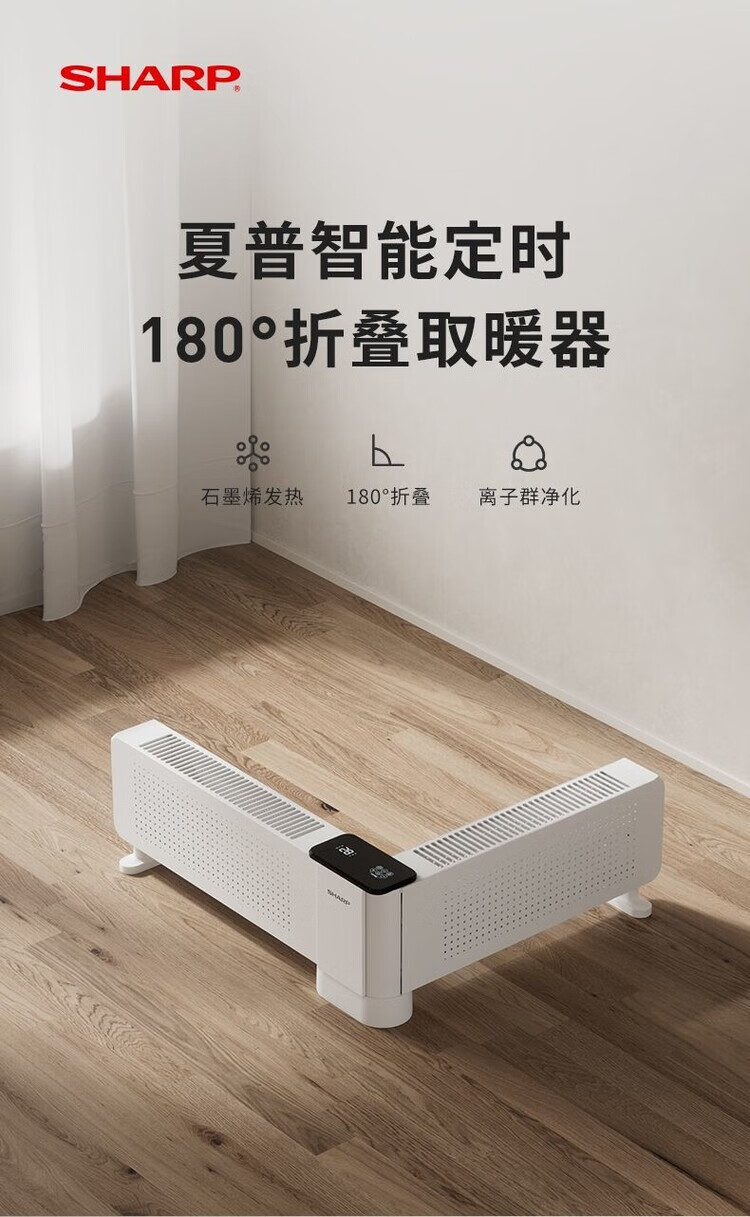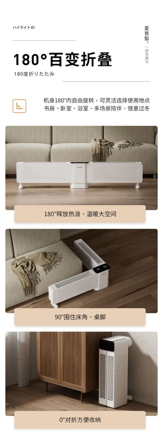 夏普 折叠踢脚线取暖器HX-BR225B-B