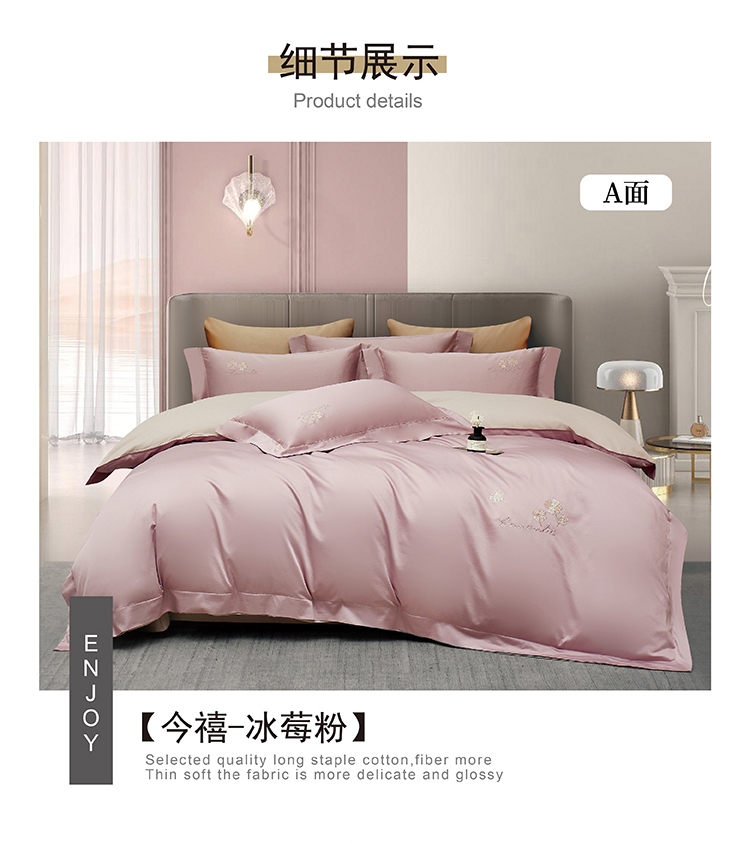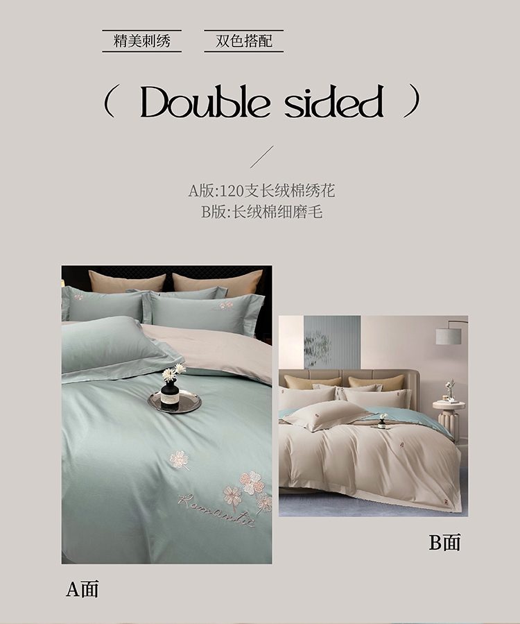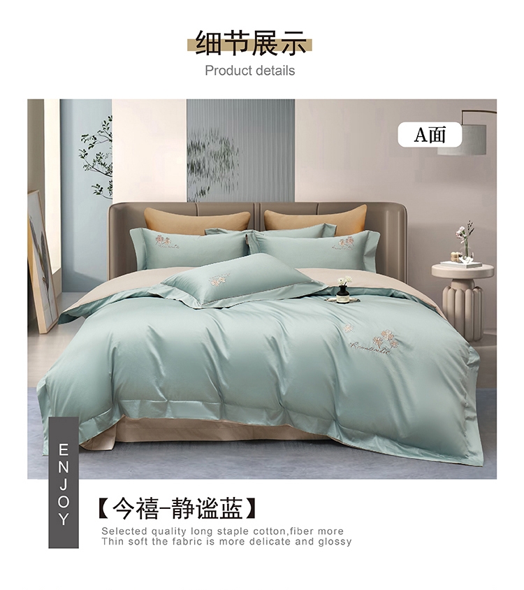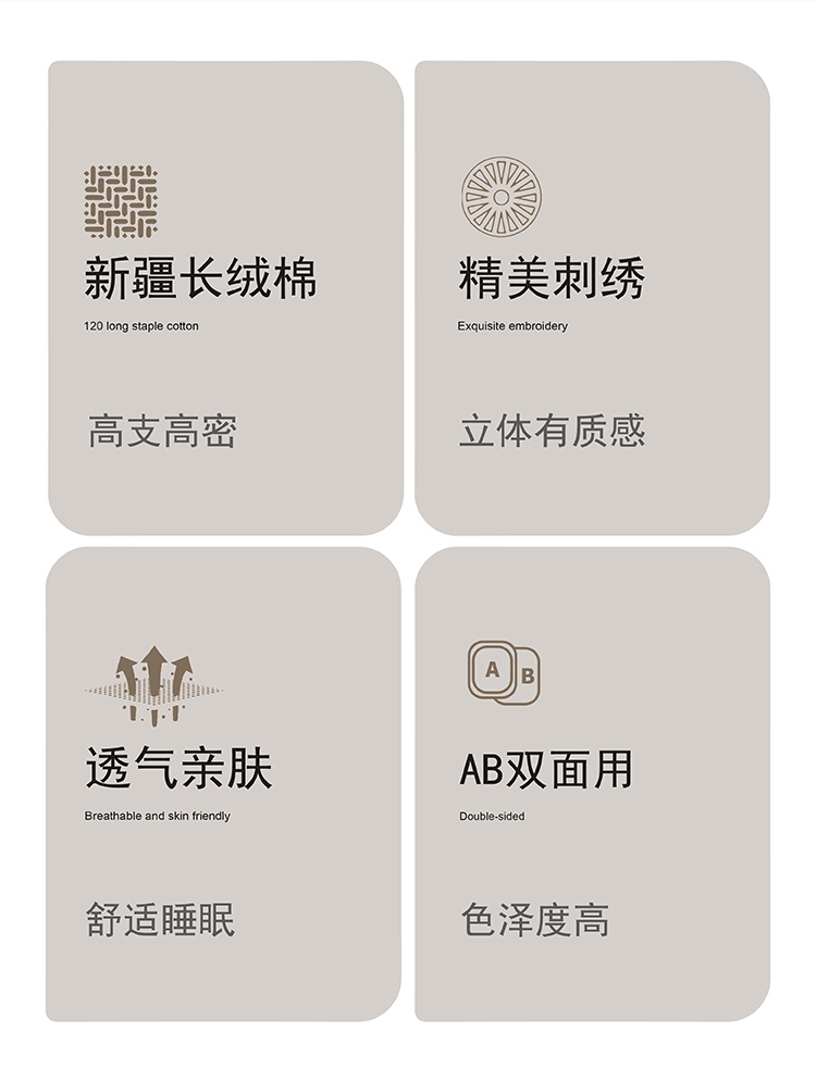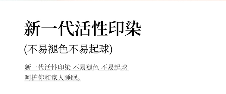 面料选用优质长绒棉,臻享绸缎般丝滑;AB双面用设计;新一代活性印染工艺,色彩绚丽,色牢度高,久洗如新