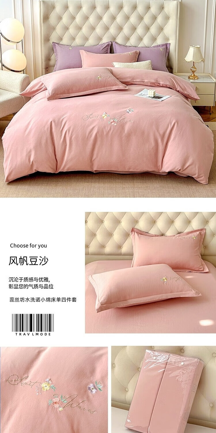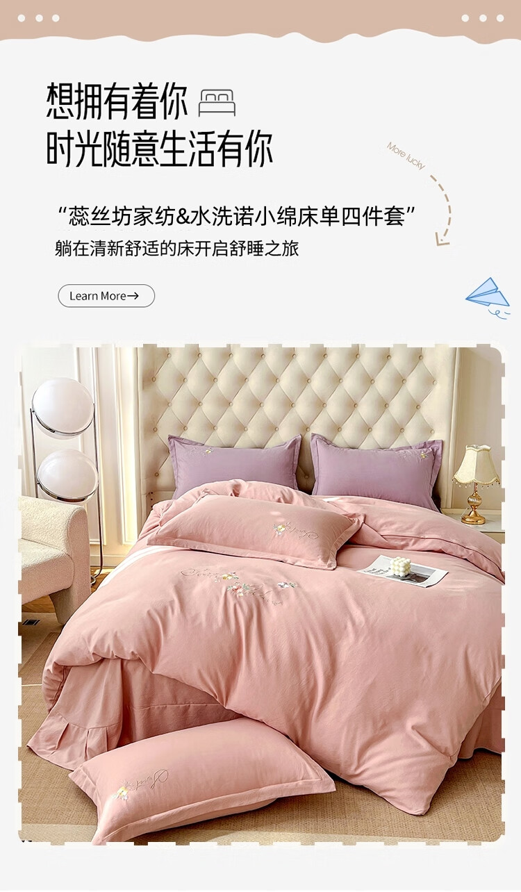 蕊丝坊 水洗诺小绵床单款四件套双面亲肤