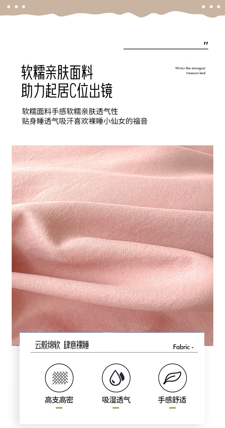 甄选双面亲肤加厚诺小绵面料,细腻柔软贴近肌肤;简约精美绣花设计,追求优雅品质,将浪漫尽数收藏;具有良好的透气吸湿性,裹上就有不想离开的依赖感
