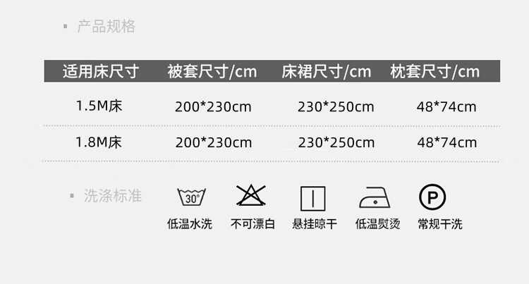 规格: 被套200*230*1 床单245*250*1 枕套48*74*2 适用于1.5-1.8米床