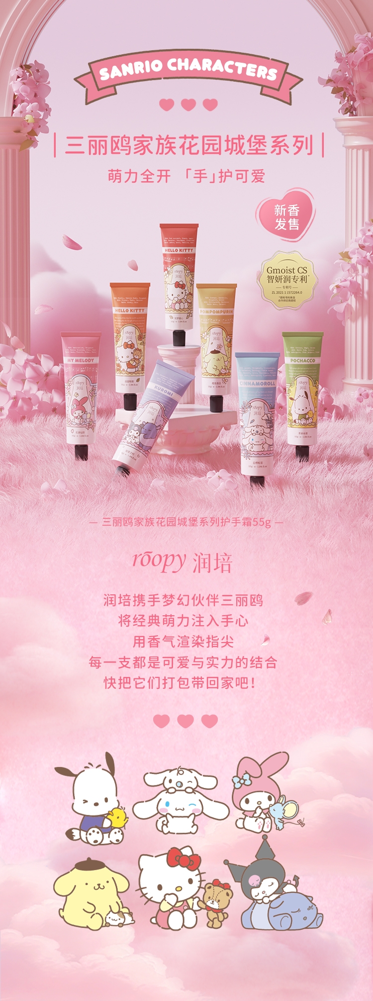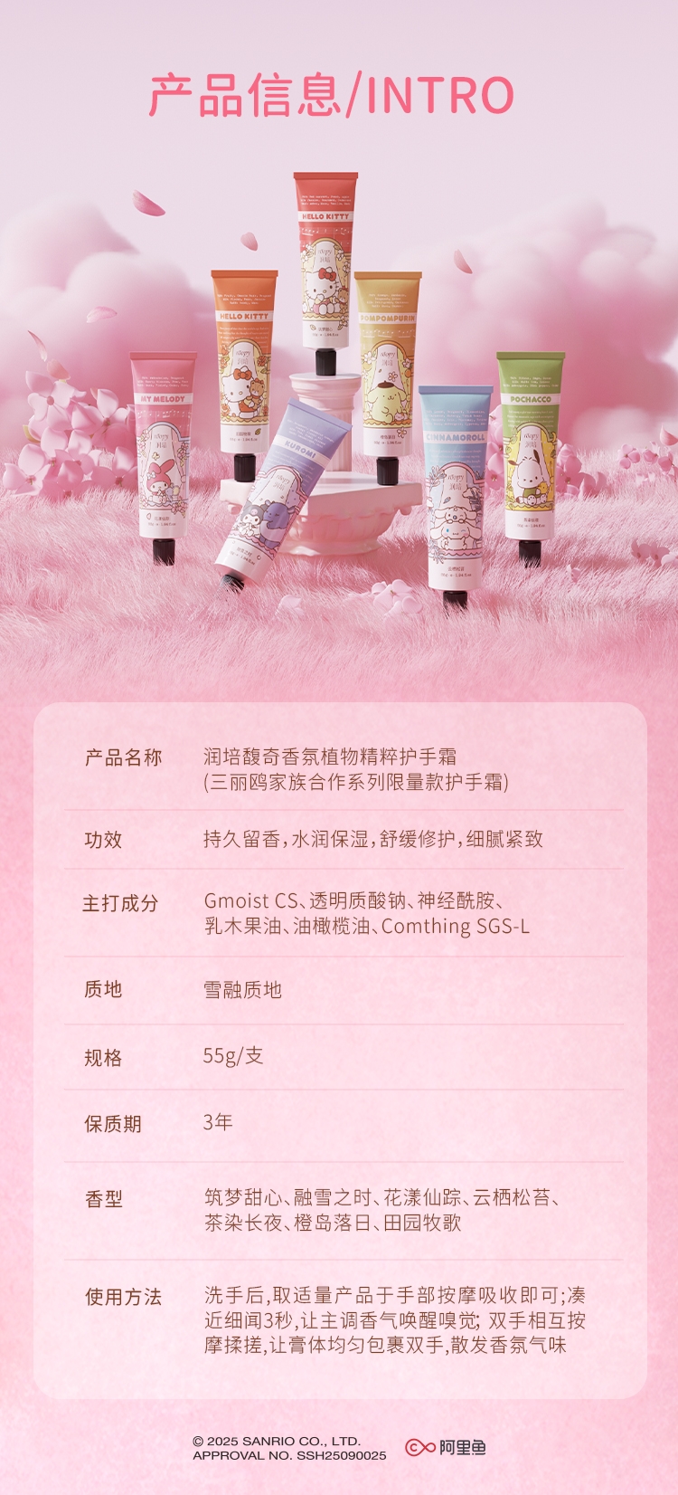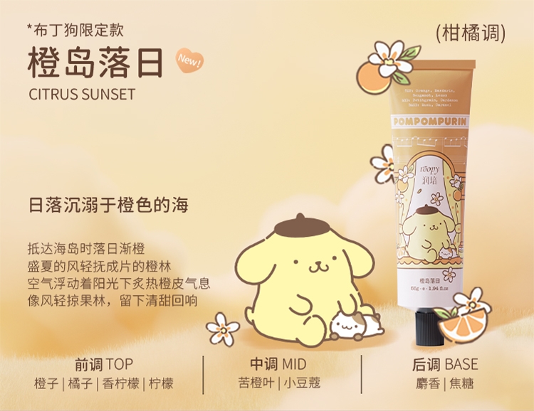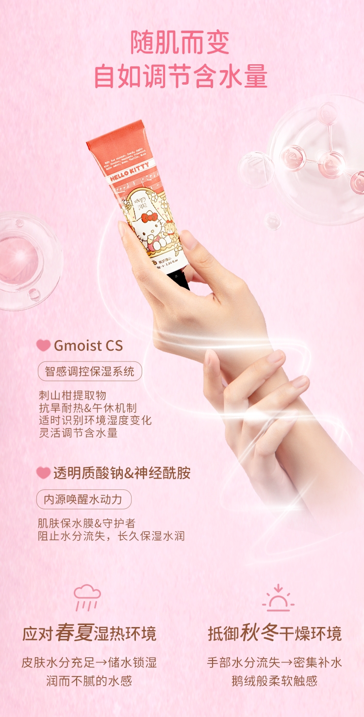 三丽鸥家族合作系列限量款,可爱与实力的结合;随手润护,水润轻盈,改善干痒,温和舒缓,改善倒刺;携手百年香料世家专研香氛情绪密码,特调高定香氛