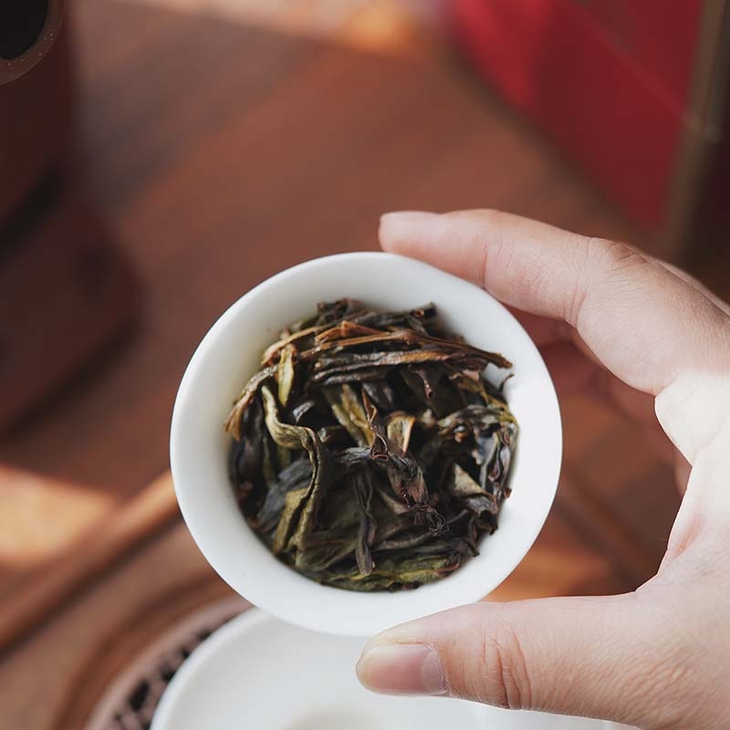 干茶外形紧结肥硕,色泽红褐或乌润,条索紧结较直;香气浓郁,独具兰花香和甜美的蜜香,两者交织在一起;汤色橙黄透亮,清澈明亮,表现出茶叶的高品质