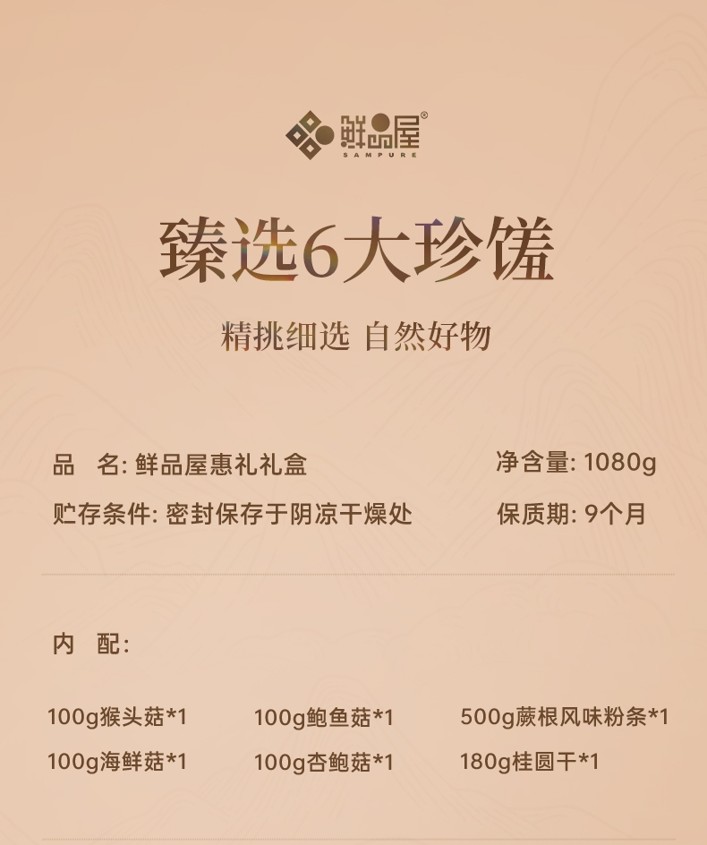 鲜品屋 惠礼菌菇干货礼盒1080g