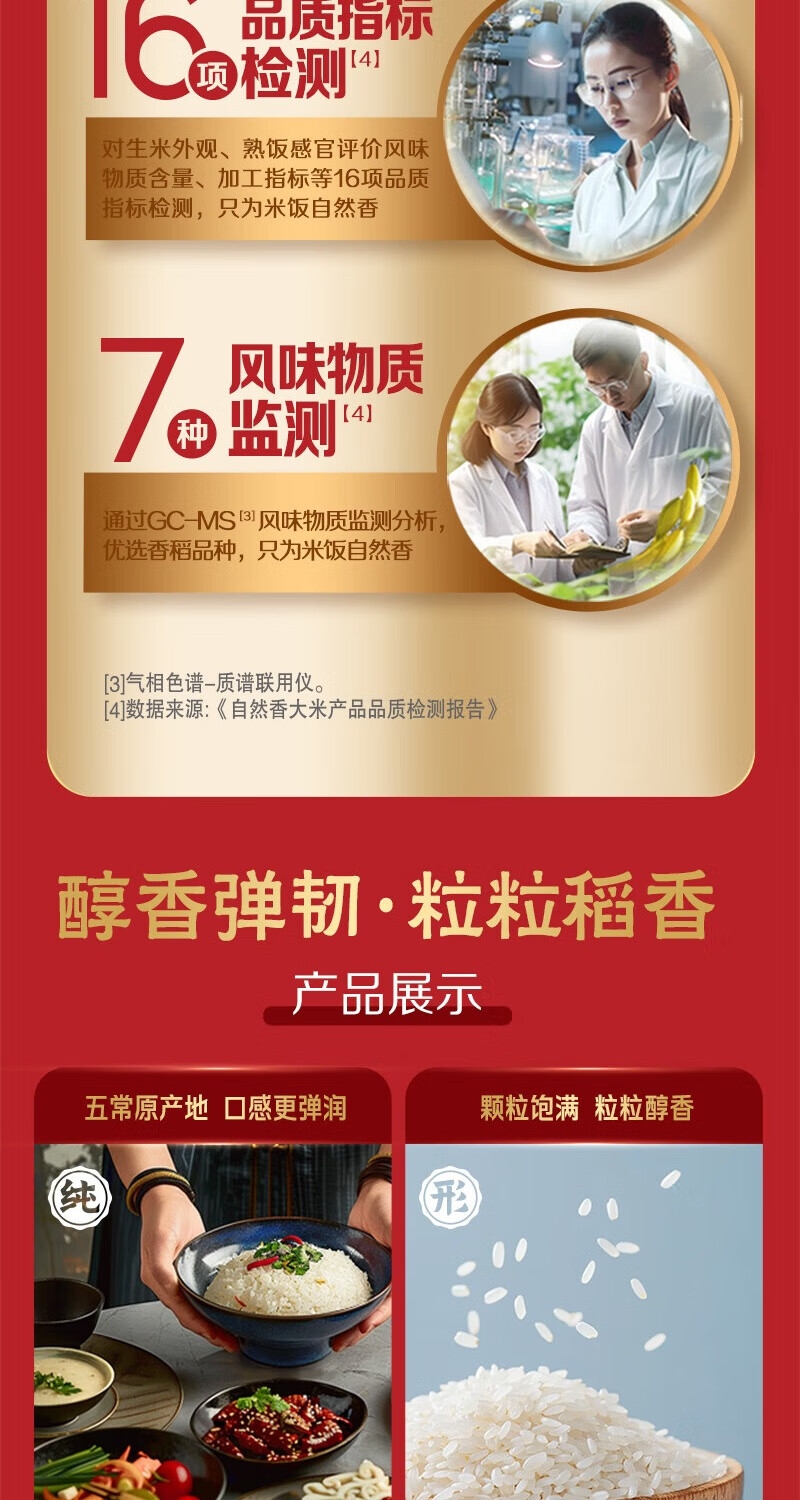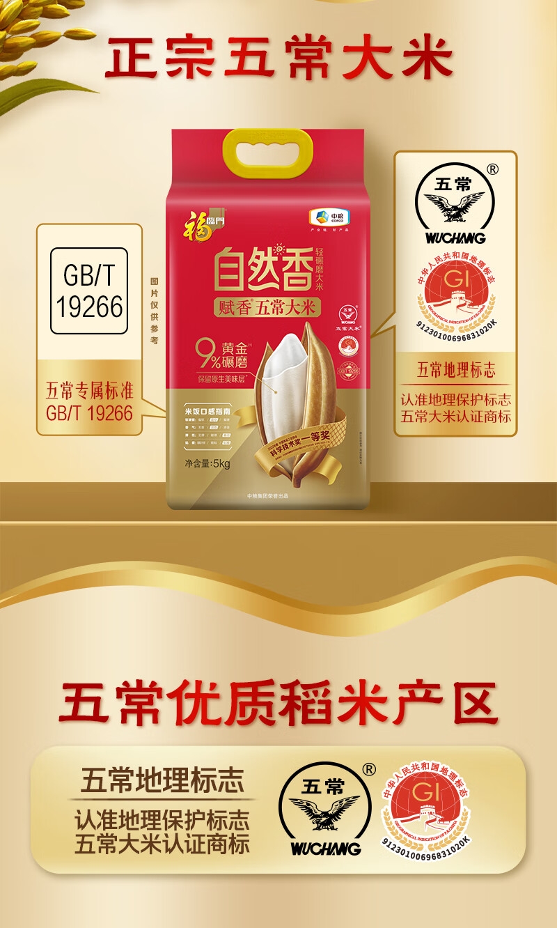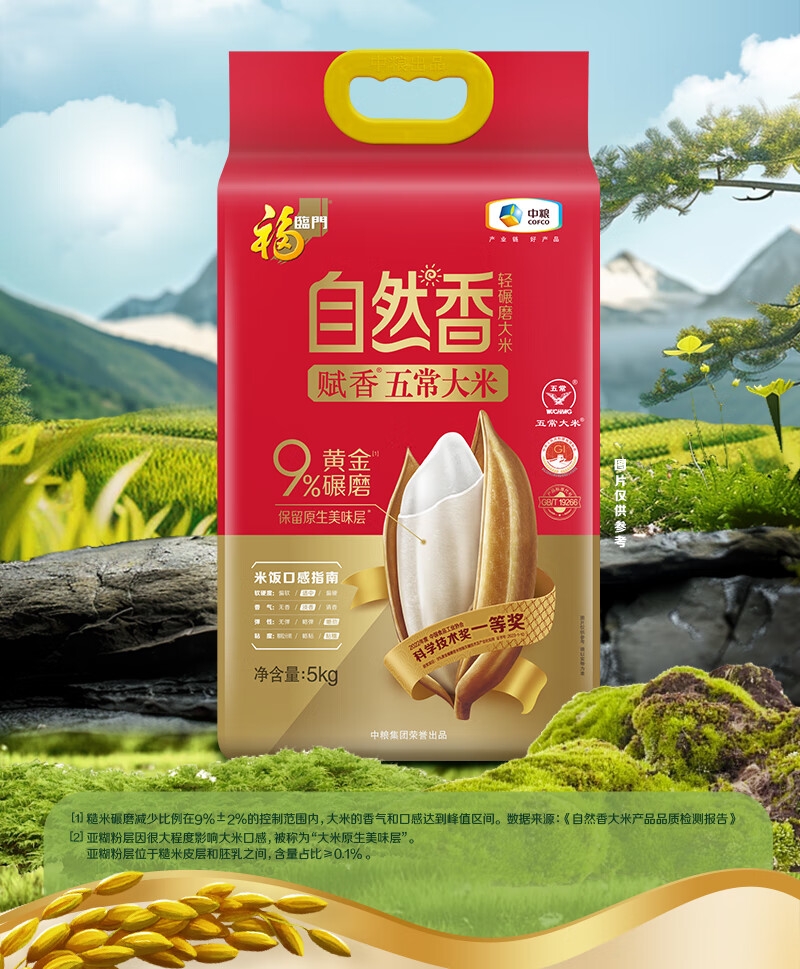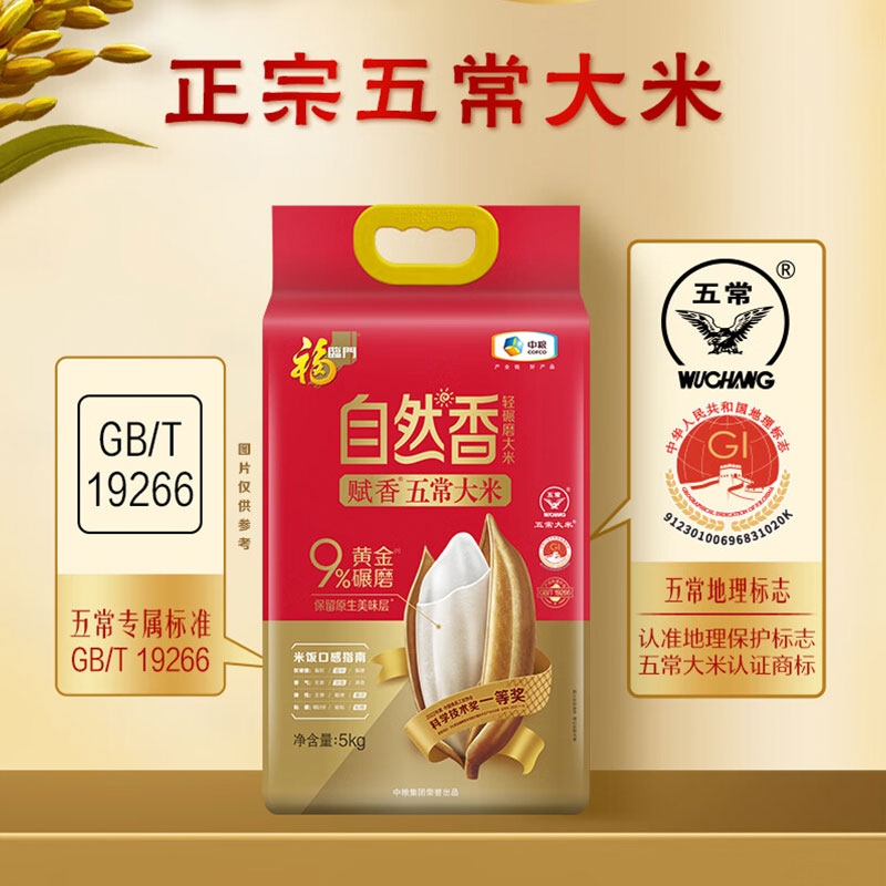 自然香系列采用的9%黄金碾磨技术;选用五常新优质品种,米粒细长有嚼劲;是国家地理标志保护产品